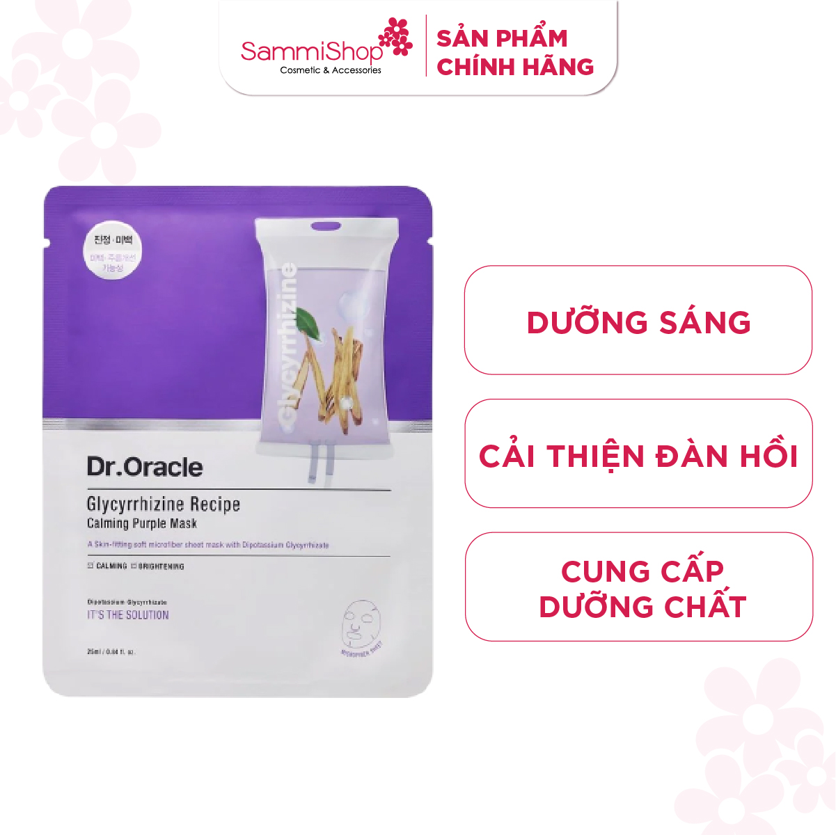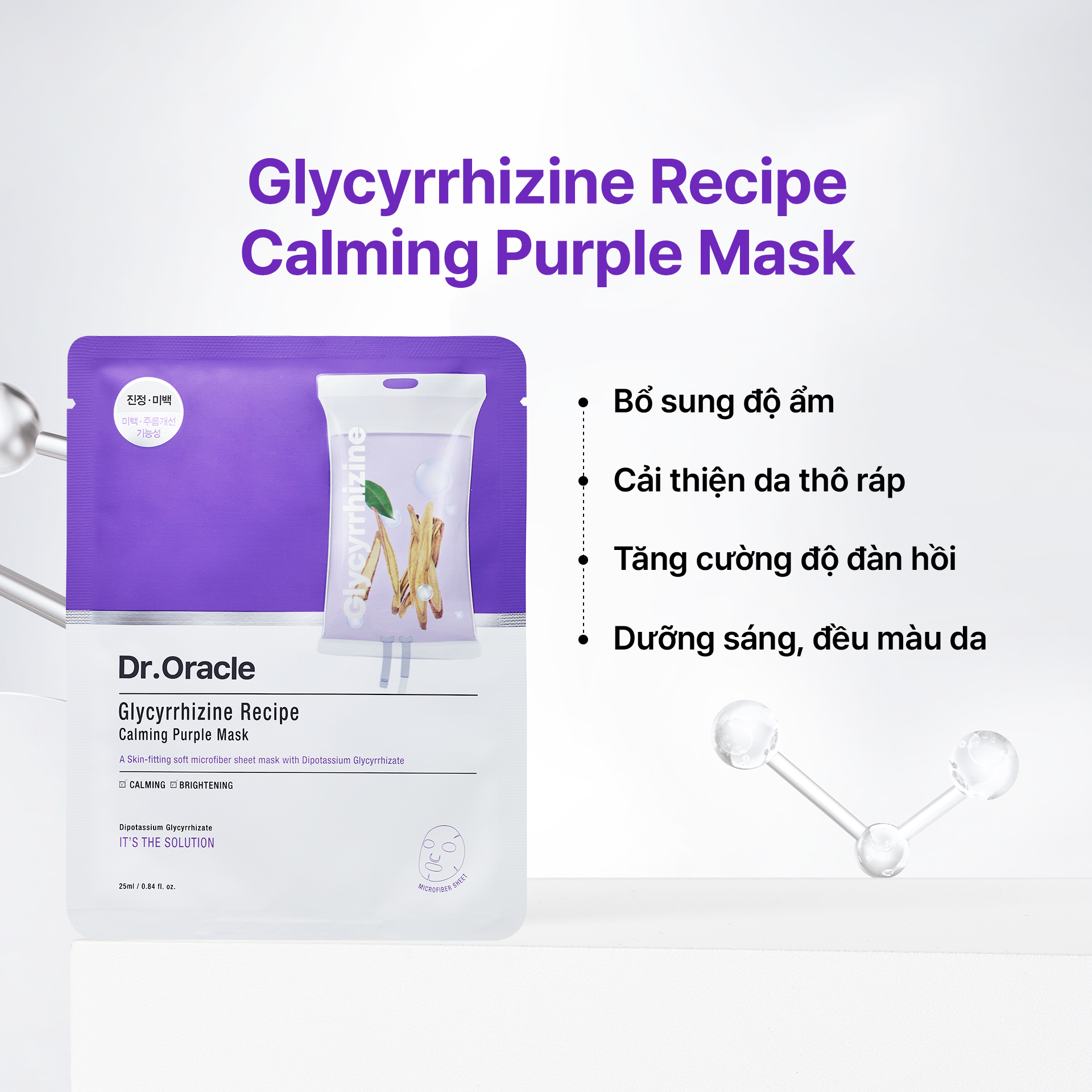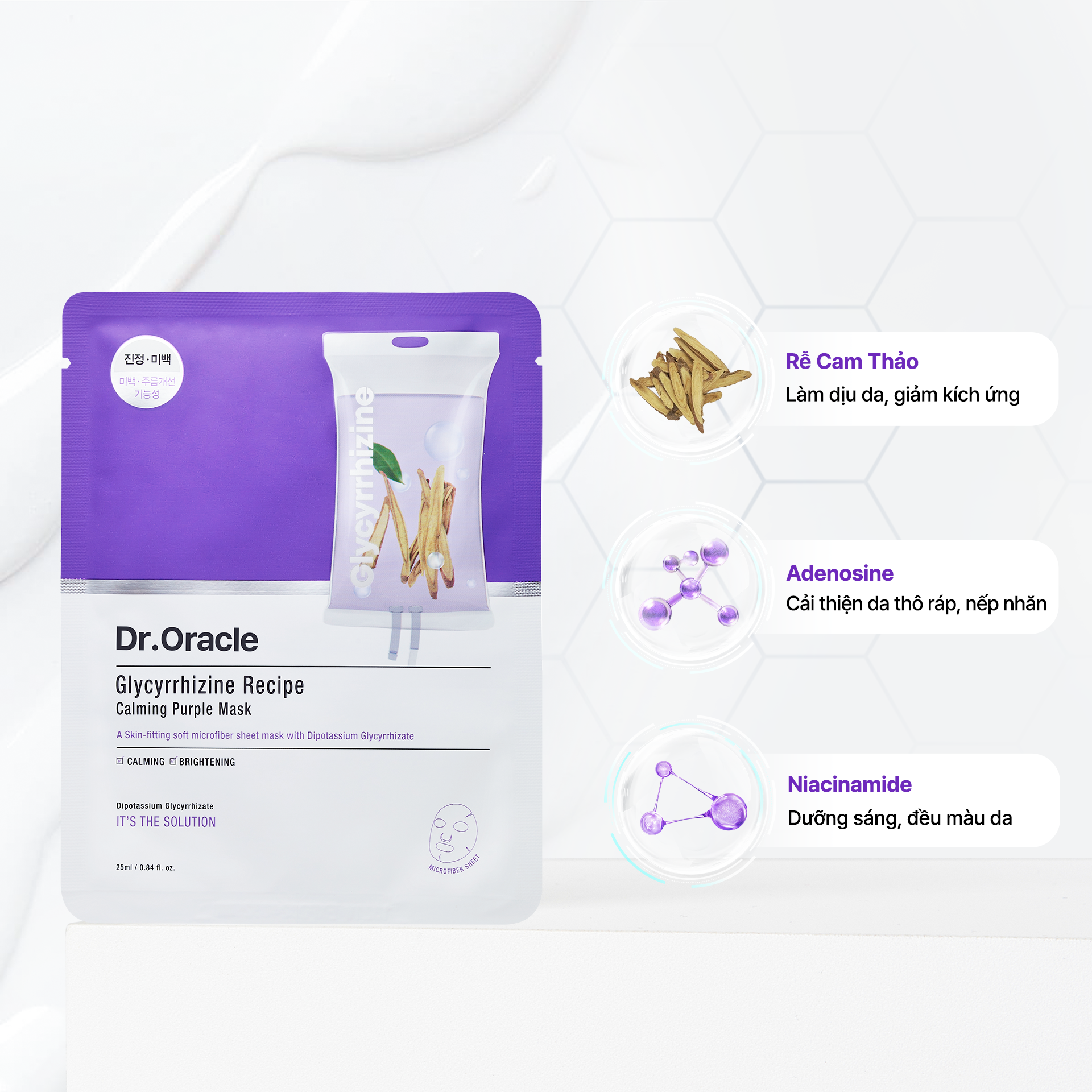 Dr.Oracle Mặt nạ Glycyrrhizine Recipe Calming Purple Mask 22ml bổ sung độ ẩm, làm dịu, cung cấp dưỡng chất, dưỡng sáng và cải thiện độ đàn hồi, làm dịu và giúp da mềm mịn, rạng rỡ.