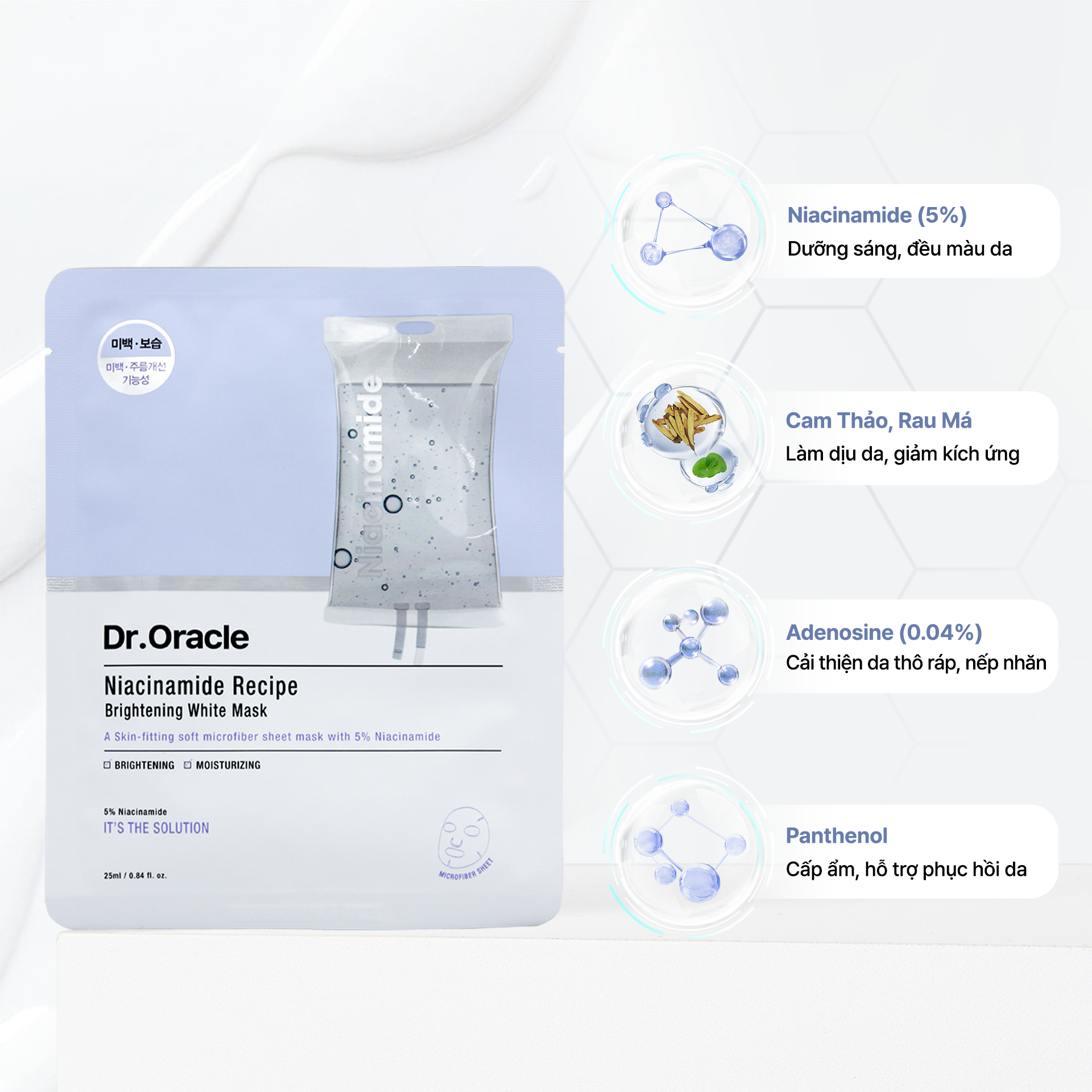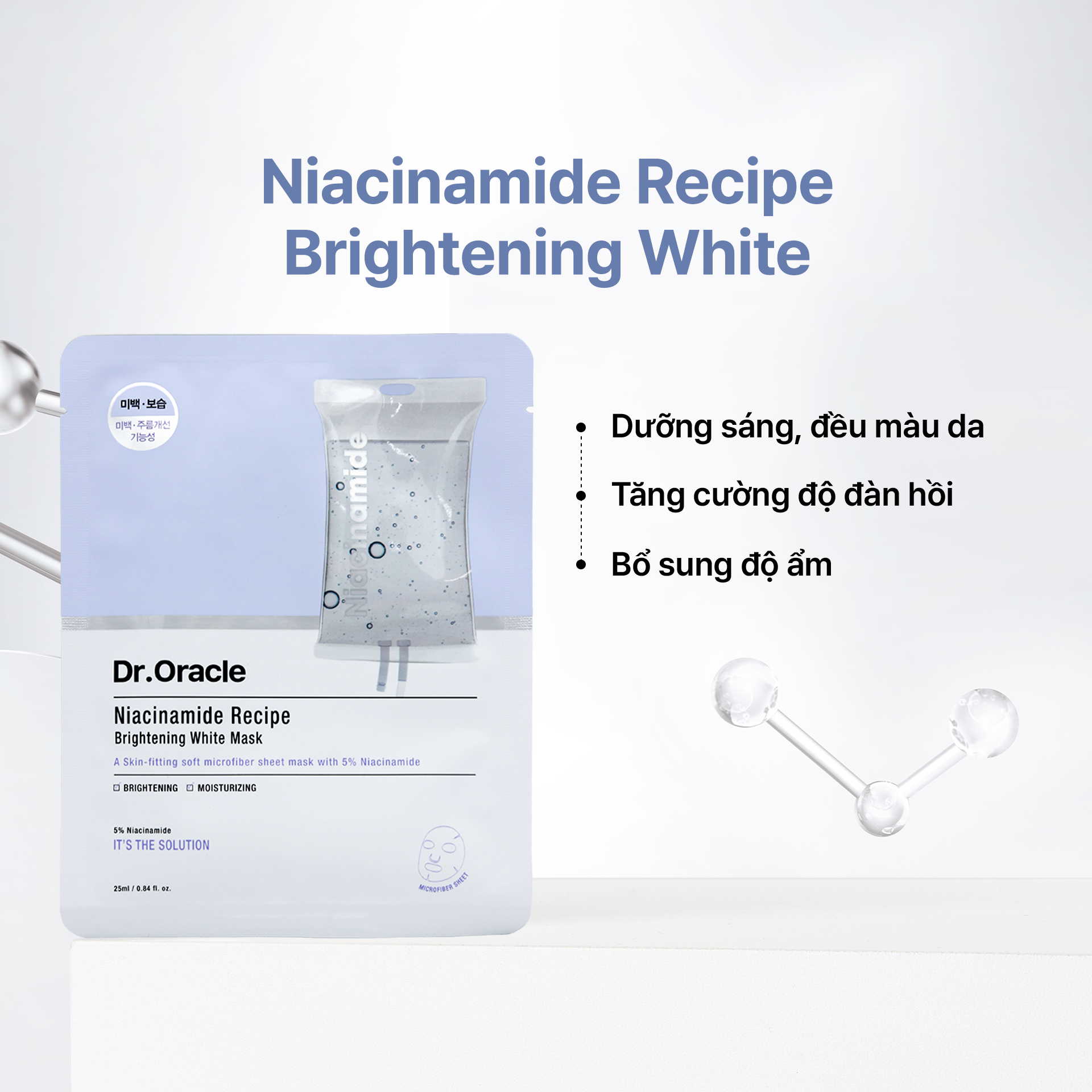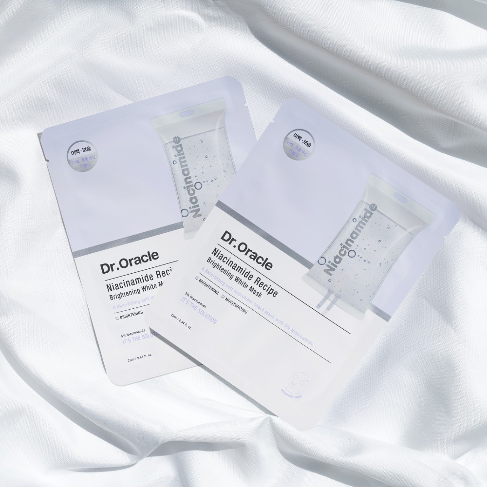 Dr.Oracle Mặt nạ Niacinamide Recipe Brightening White Mask 25ml giúp bổ sung độ ẩm, dưỡng trắng da, cải thiện da sạm màu và mang lại làn da sáng khỏe.