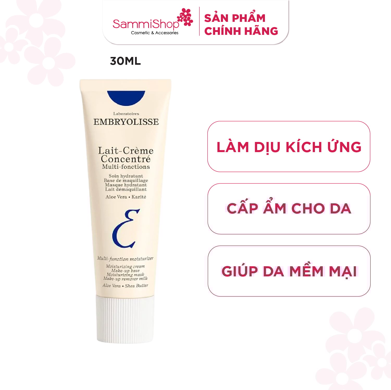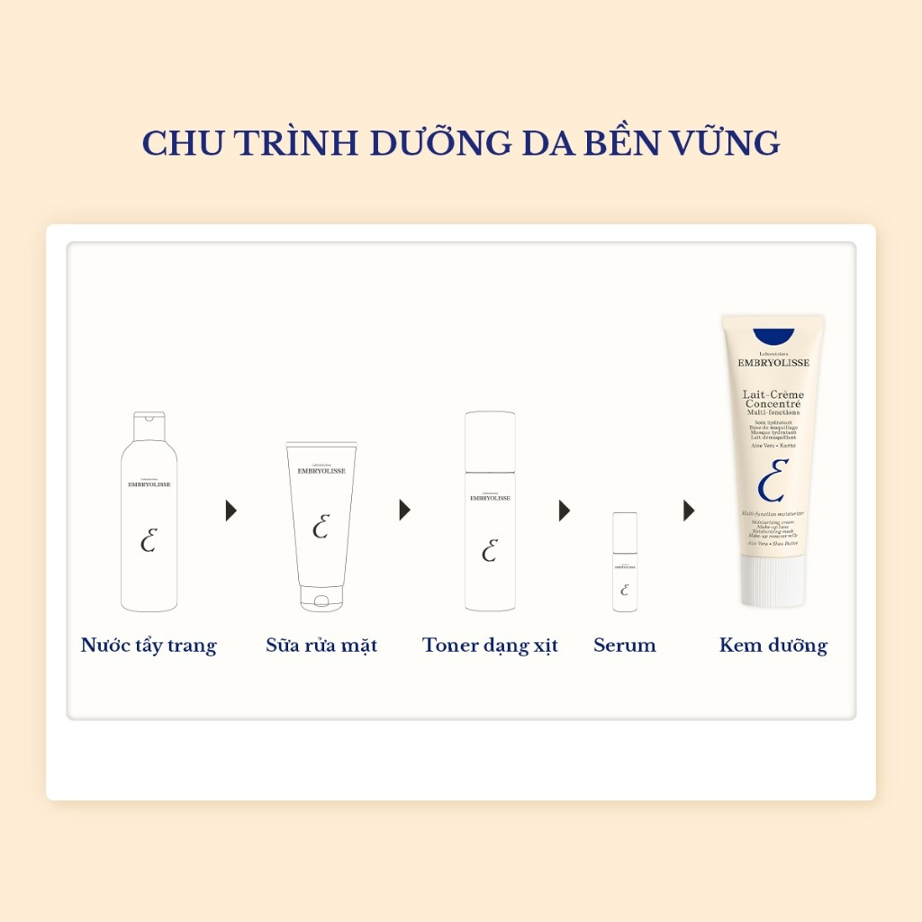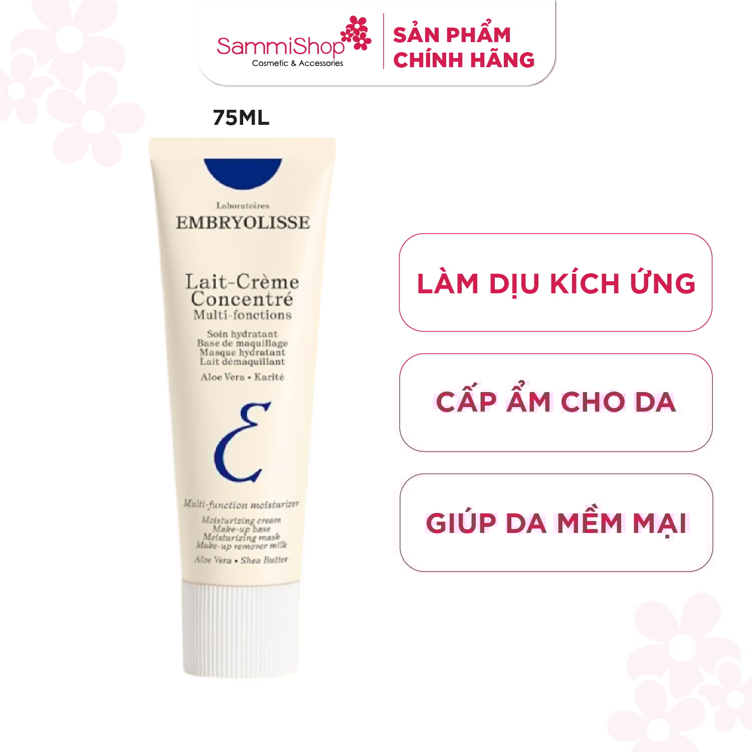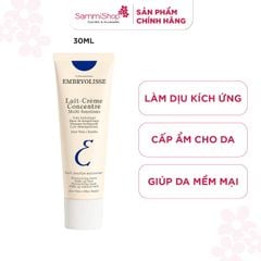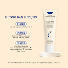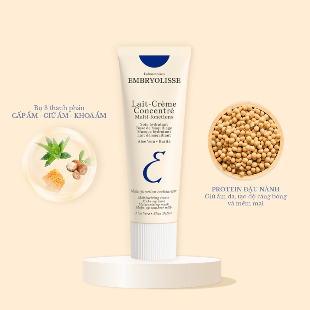 Embryolisse Sữa dưỡng Lait - Crème Concentré đến từ Pháp với sự kết hợp từ bộ 3 thành phần cốt lõi thiên nhiên nha đam hữu cơ, bơ hạt mỡ và sáp ong, cùng protein đậu nành giúp làn da được dưỡng ẩm mịn màng, đồng thời làm dịu kích ứng và phục hồi hiệu quả để làn da luôn ẩm mịn và rạng rỡ