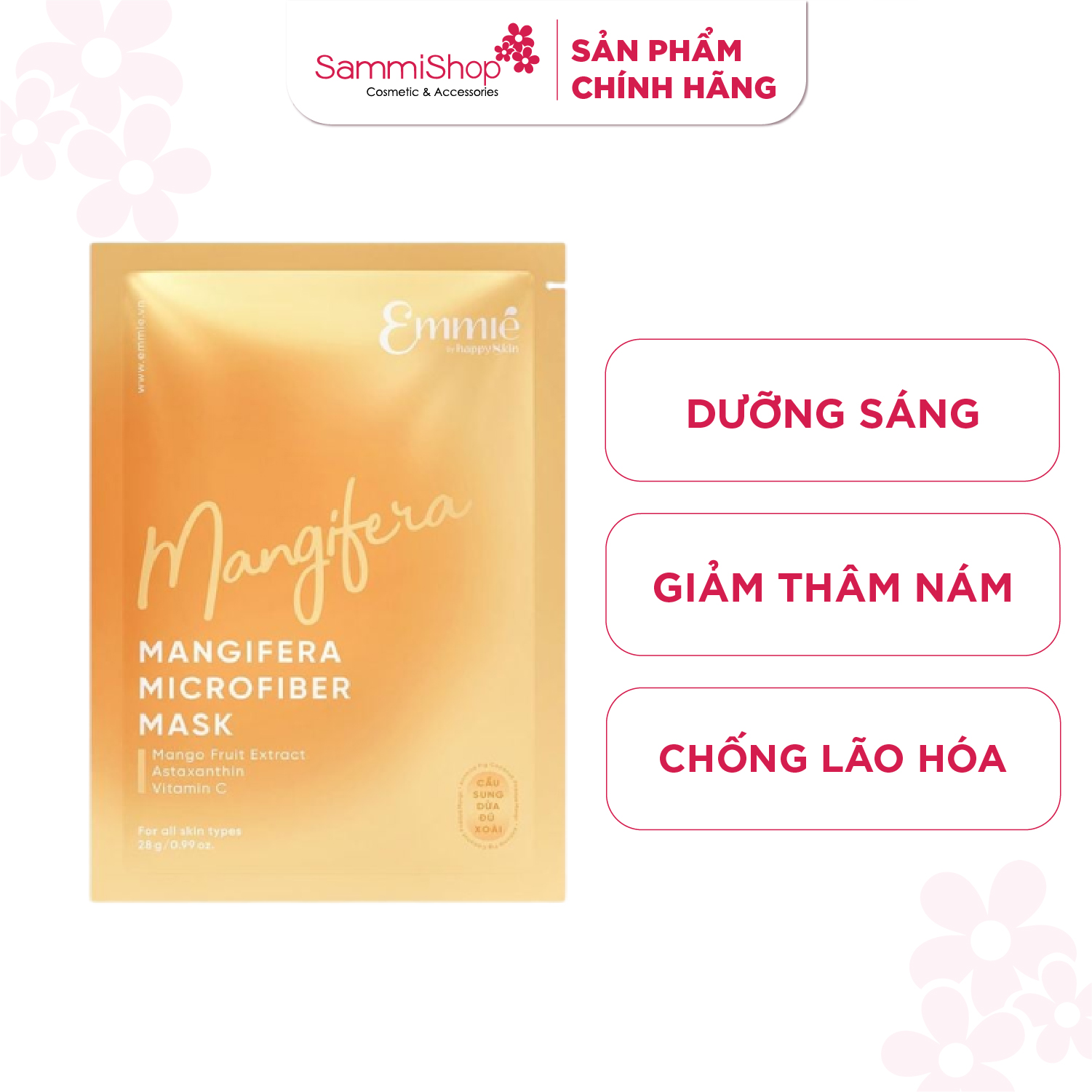 Emmie by Happyskin Mặt Nạ Microfiber Mask 28g phù hợp với nhiều tình trạng da khác nhau, ngoài ra mặt nạ giàu dưỡng chất giúp hạn chế tình trạng khô ráp da.