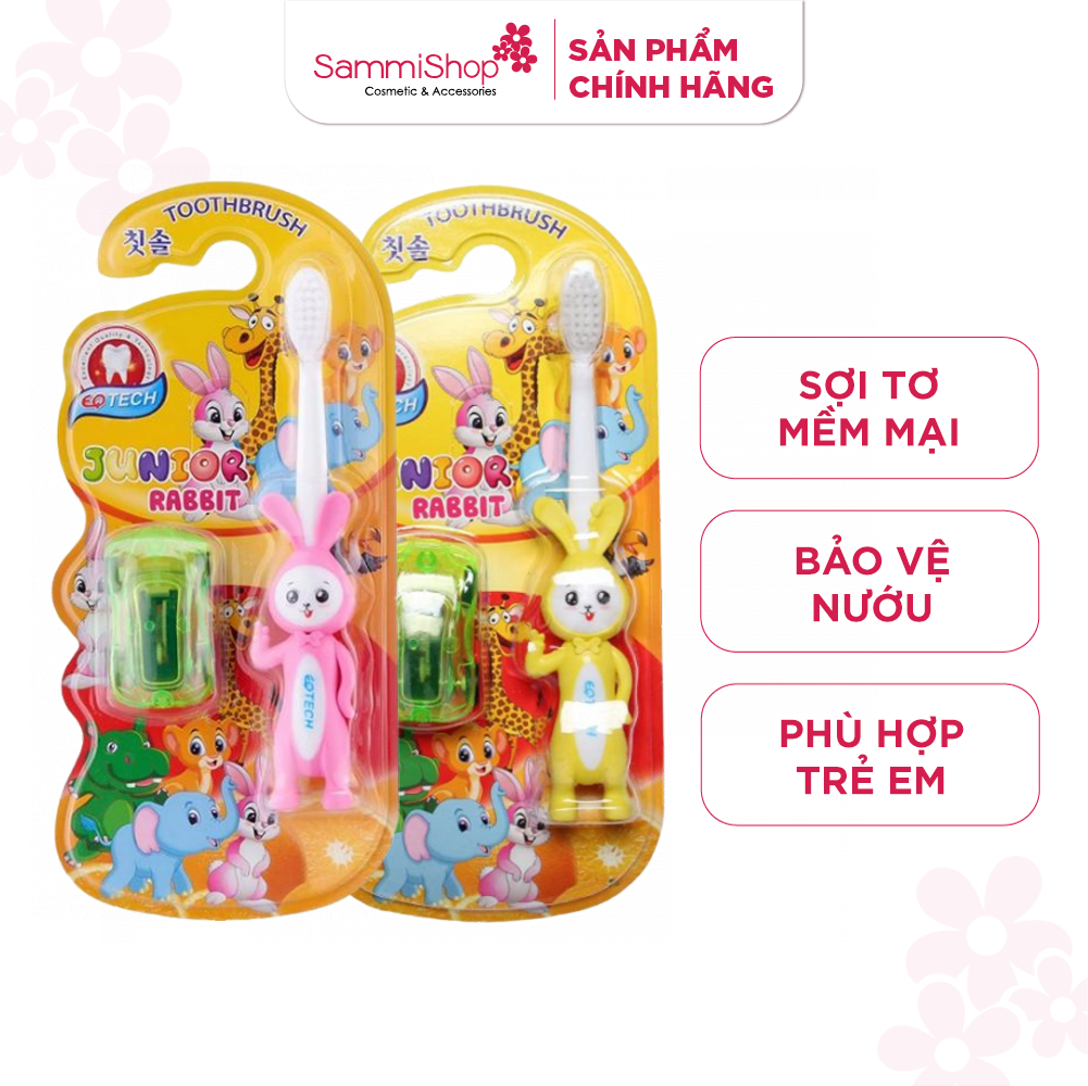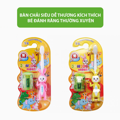 Bộ bàn chải đánh răng trẻ em Junior Rabbit oto gồm 1 bàn chải thiết kế hình thỏ ở đầu cán tăng sự ngộ nghĩnh đáng yêu dành cho trẻ và 1 xe ô tô.