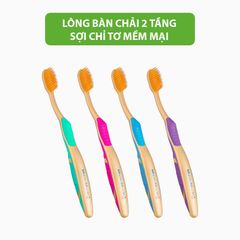 - Cấu trúc lông bàn chải 2 tầng với sự đan xen của sợi chỉ tơ tròn và sợi chỉ tơ mỏng mềm mại đảm bảo cho sự xen kẽ vào từng kẽ chân răng giúp làm sạch răng ở những nơi mà bàn chải thường khó có thể len vào, không chỉ làm sạch răng và mảng bám lông bàn chải mềm còn giúp mát xa lợi giúp lưu thông máu.
