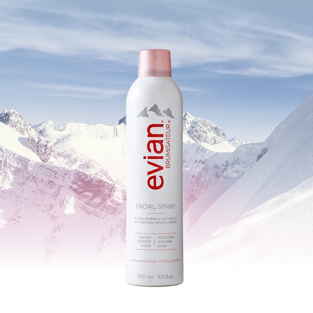 Xịt khoáng Facial Spray Evian đến từ nước Pháp chứa đựng nguồn nước khoáng thiên nhiên bắt nguồn từ nước mưa và tuyết tan lắng đọng tại lưu vực hàng ngàn năm tuổi. Tại độ cao 850m của trung tâm dãy Alps, Xịt khoáng Evian Facial Spray cực kỳ tinh khiết, giàu các khoáng chất thiết yếu từ thiên nhiên và không bị tác động bởi ô nhiễm từ các khu thành thị và khu công nghiệp.