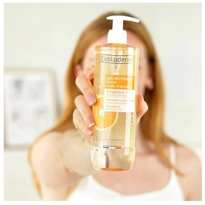 Evoluderm Gel rửa mặt Vitamin C 500ml với 97% thành phần nguồn gốc tự nhiên, thuần chay, giàu vitamin C và chiết xuất cam giúp thanh lọc da, loại bỏ bụi bẩn và tạp chất ô nhiễm một cách nhẹ nhàng mà không gây khô căng. Vitamin C và chiết xuất cam mang lại khả năng chống oxy hóa, dưỡng ẩm, làm mềm da và khôi phục vẻ rạng rỡ. Kết hợp cùng glycerin thực vật giúp cấp ẩm, bảo vệ da, để lại làn da sạch thoáng, tươi mới và tràn đầy sức sống.