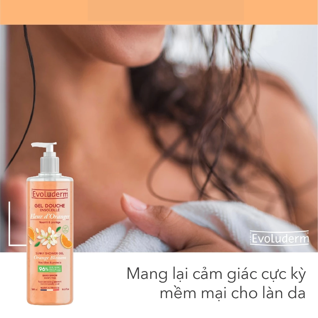- Sau khi tắm có thể kết hợp thêm với Sữa Dưỡng Thể Evoluderm để dưỡng cho làn da của bạn thêm mịn màng hơn