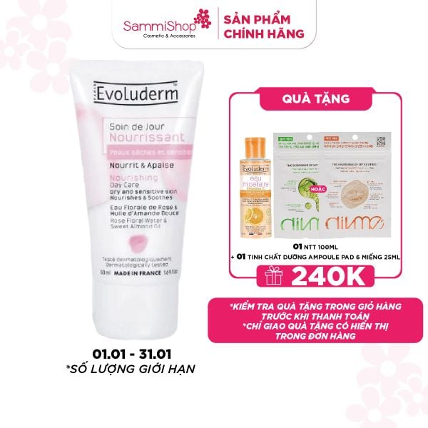 Evoluderm Kem dưỡng da ban ngày Nourishing Day Care 50ml phù hợp với da khô nhạy cảm, giúp bảo vệ và làm mềm da, cải thiện độ đàn hồi.