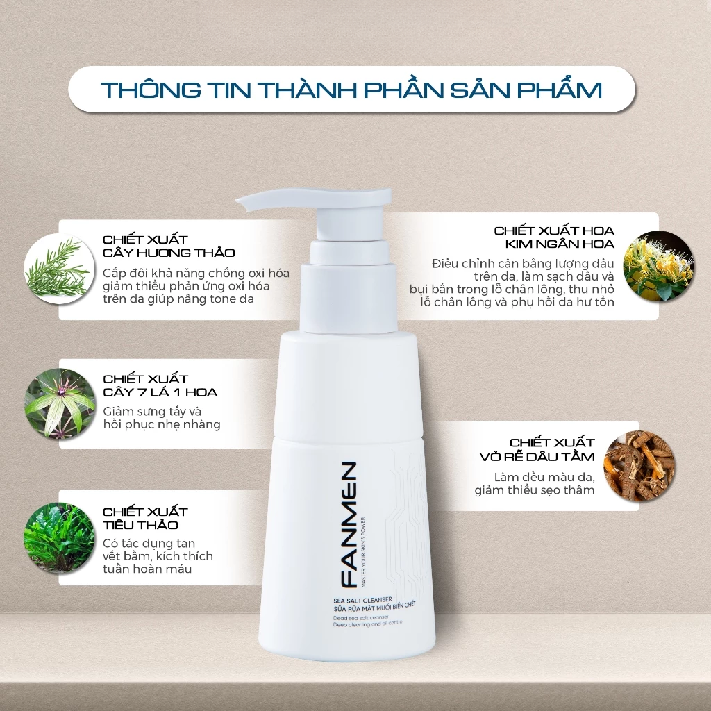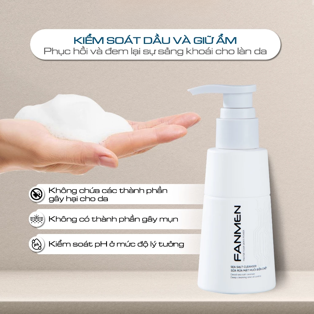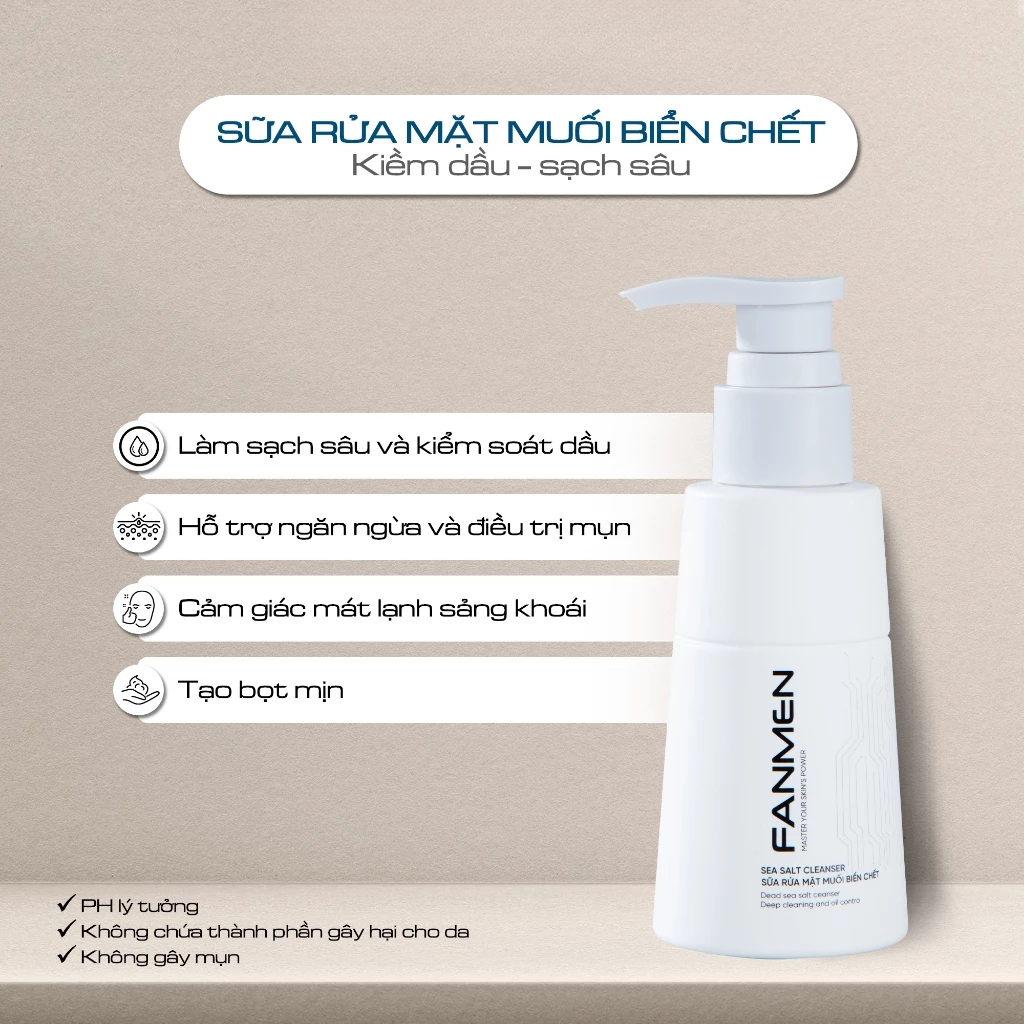 Fanmen Sữa rửa mặt Sea Salt Cleanser 100ml giúp hạn chế tiết bã nhờn trên da dầu, cân bằng giữa nước và dầu trên da mặt giúp da hạn chế tình trạng khô ráp.