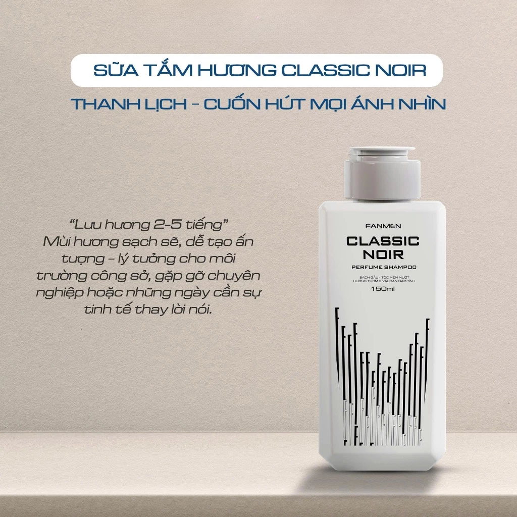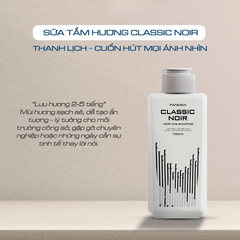 Fanmen Sữa tắm nước hoa Classic Noir với hương gỗ thủy sinh mang lại cảm giác sảng khoái khi làm sạch, loại bỏ cảm giác bết dính sau ngày dài