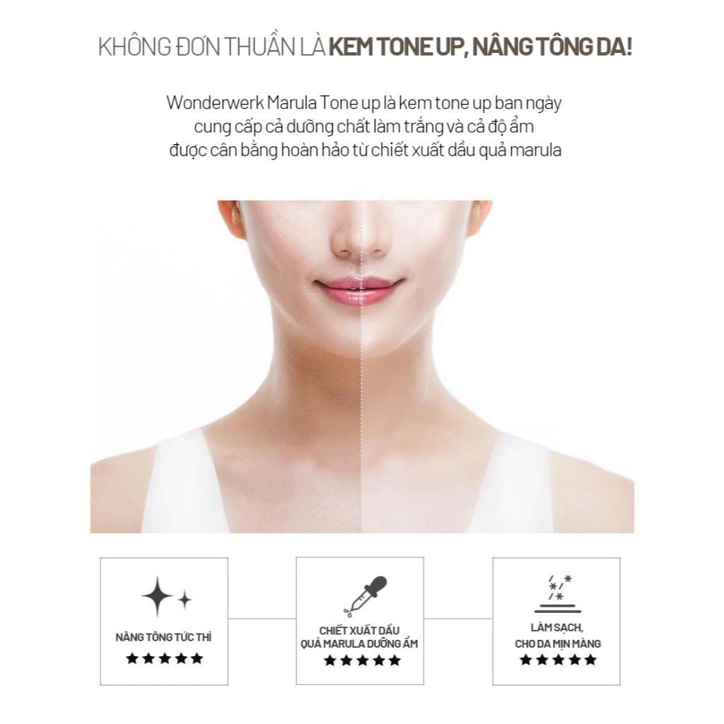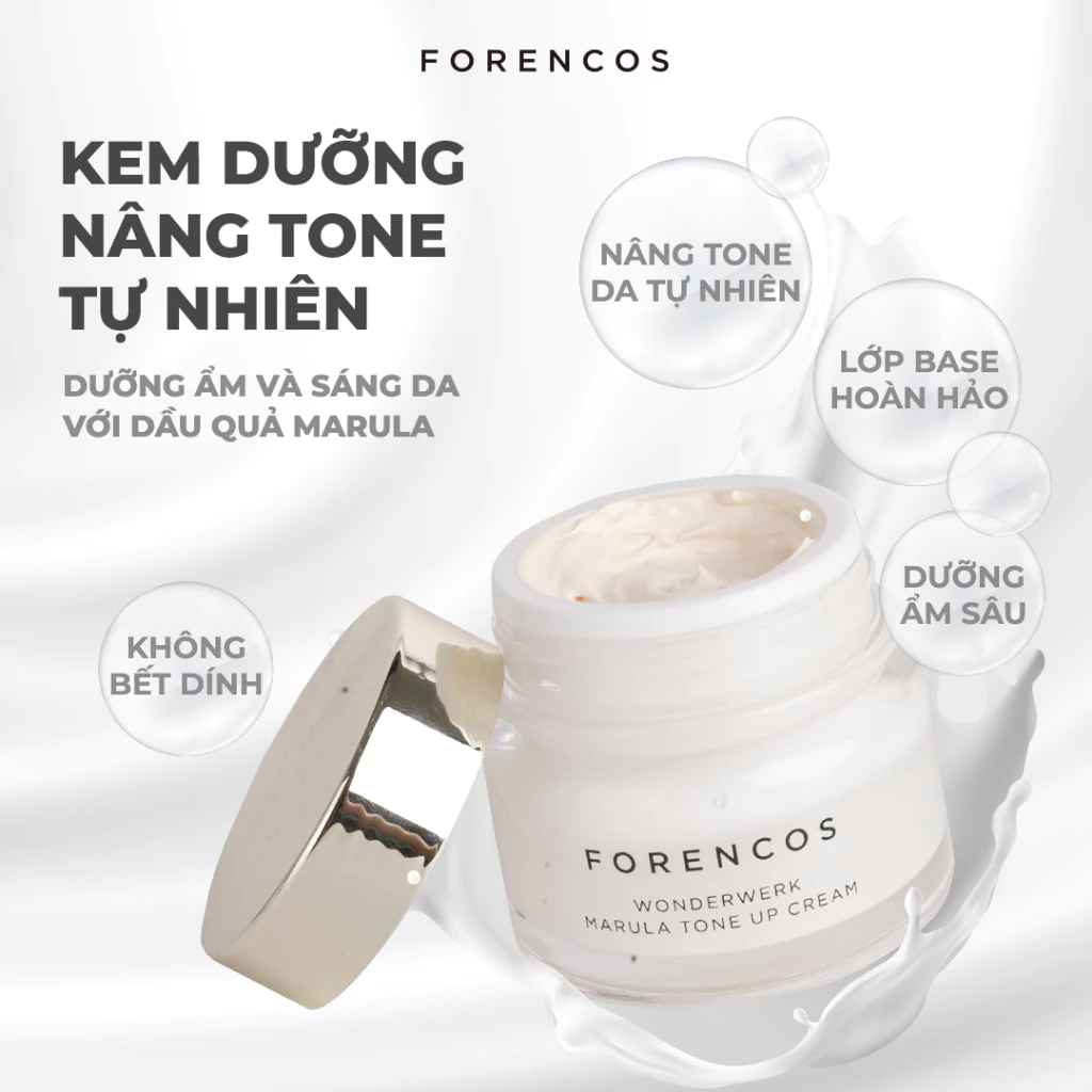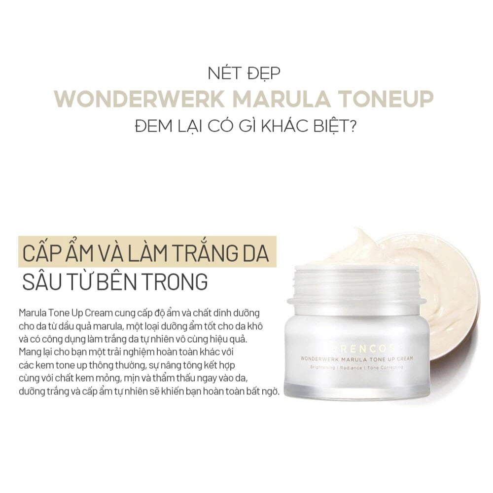 Forencos Kem dưỡng Wonderwerk Marula Tone Up Cream 50ml với chiết xuất từ dầu quả Marula có nguồn gốc từ miền Nam Châu Phi có tác dụng làm da trắng sáng, cung cấp độ ẩm cho làn da khô