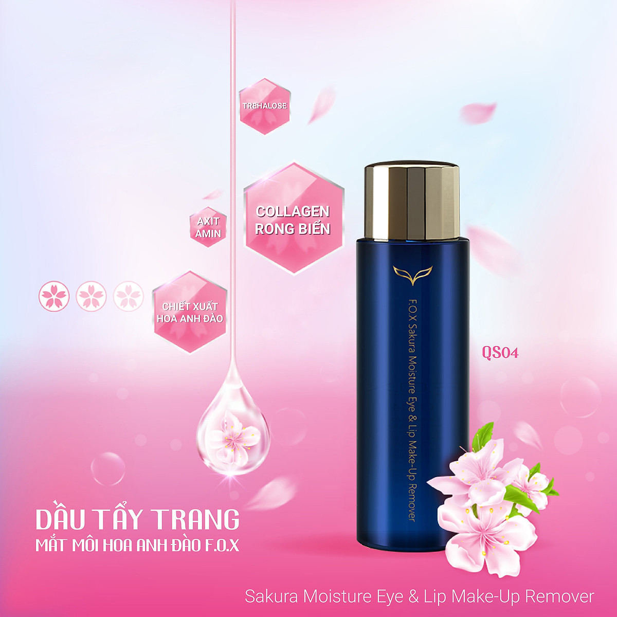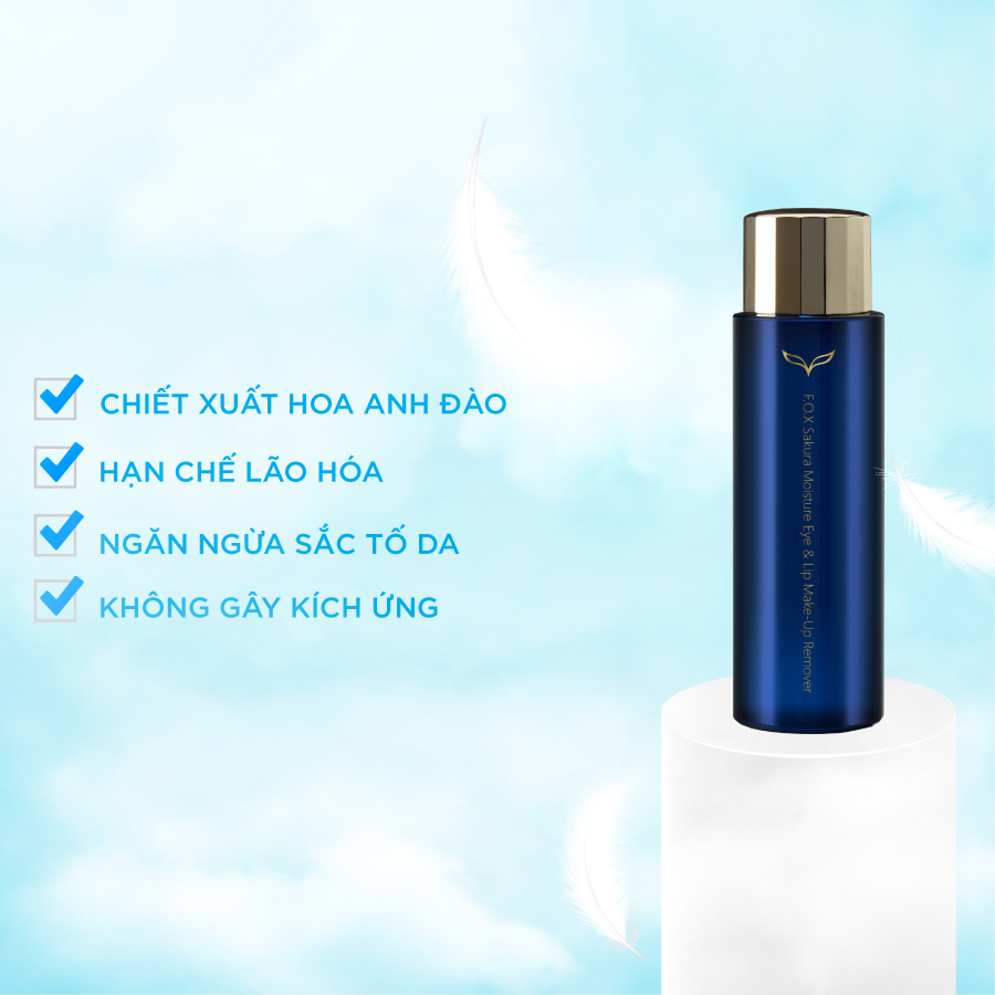 Dầu tẩy trang mắt môi F.O.X Sakura Moisture Eye & Lip Make Up Remover giúp làm sạch nhanh chóng các lớp trang điểm trên vùng mắt, môi. Không gây cay, rát. Tái tạo vùng da hư tổn, giữ nước, cân bằng ẩm.