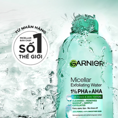 Garnier Nước Tẩy Trang Micellar Exfoliating Water For Pores & Skin Texture giúp sạch sâu, tẩy nhẹ da chết, giúp da mang lại cảm giác như mới sau lần sử dụng đầu tiên.