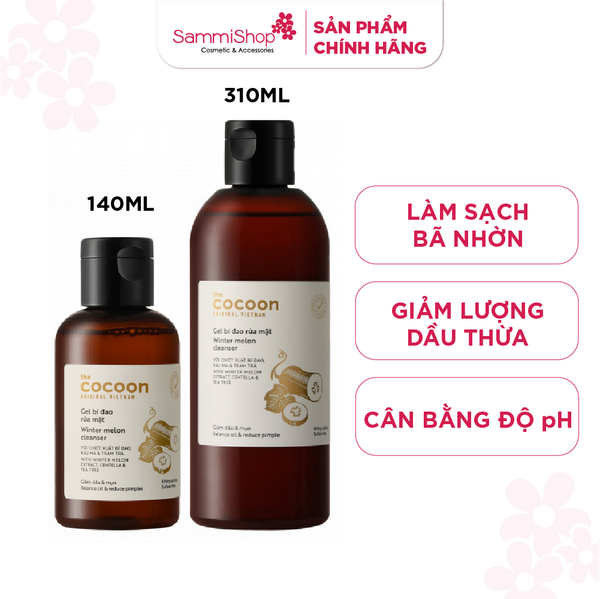 Gel bí đao rửa mặt Cocoon Winter Melon Cleanser với các thành phần gồm bí đao, rau má, tràm trà, bổ sung thêm Vitamin B3, B5 và Betaine. Gel bí đao có pH 5.5 giúp làm sạch sâu bụi bẩn và dầu thừa, làm giảm việc hình thành mụn mà vẫn giữ được độ ẩm mịn tự nhiên và không gây khô da sau khi sử dụng.