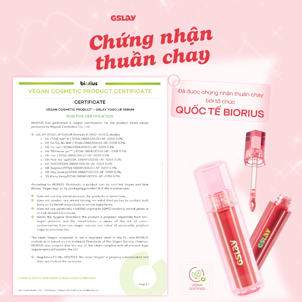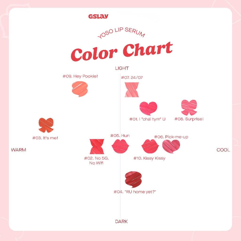 Gslay Son dưỡng có màu Yoso Lip Serum 1ml với màu sắc đa dạng bất chấp mọi tone da, cùng với kết cấu mỏng nhẹ không gây bết dính khi sử dụng