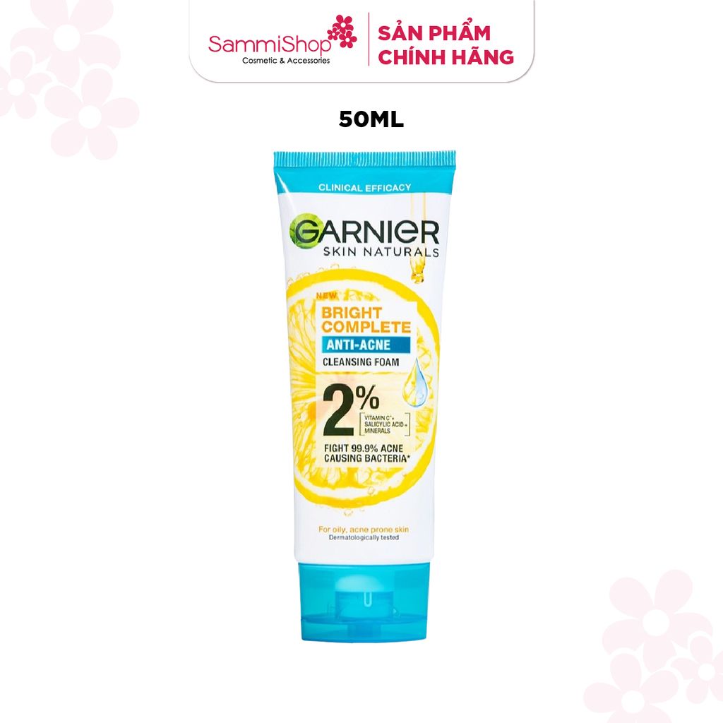 [HÀNG TẶNG KHÔNG BÁN] QT Garnier Sữa rửa mặt Skin naturals Bright complete Anti - Acne Cleansing foam 50ml