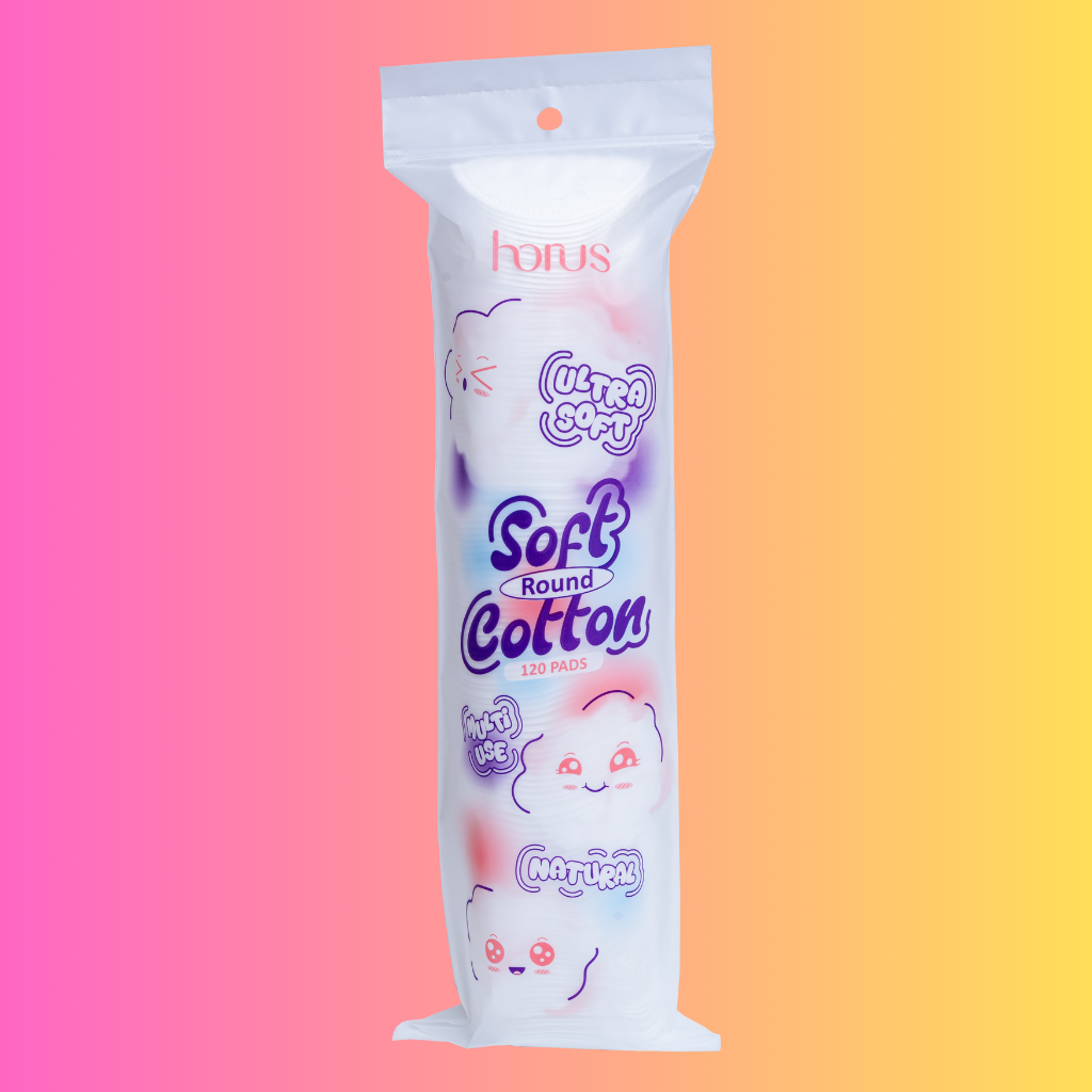 Horus Bông tẩy trang tròn Round Soft Cotton Pads 120 pads - Ultra Soft với cải tiến túi cứng cáp, dễ dàng lấy bông tẩy trang khi sử dụng. Ngoài ra, sản phẩm còn x2 bền chặt - x2 mềm mịn - x2 tiết kiệm dung dịch.