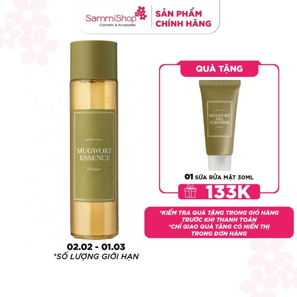 Tinh chất I’m from Mugwort Essence chứa 100% chiết xuất ngải cứu, làm dịu và phục hồi làn da bị tổn thương. Ngoài ra, giúp loại bỏ bã nhờn dư thừa trên da sau khi rửa mặt đồng thời cân bằng độ pH để các bước skincare tiếp theo đạt hiệu quả hơn. Sản phẩm có màu xanh trong, lỏng, nhẹ, thấm nhanh trên da.