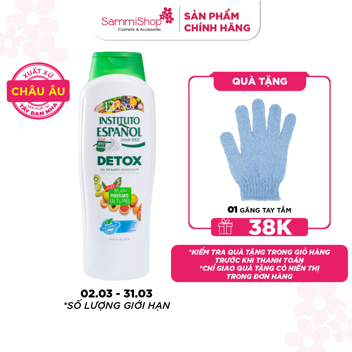 Instituto Español Gel tắm Detox Gel De Baño Hidratante 1250ml được chứng nhận thuần chay đến từ Tây Ban Nha giúp làm sạch và thanh lọc cho làn da của bạn mang lại sự thư giãn và sảng khoái sau khi sử dụng.