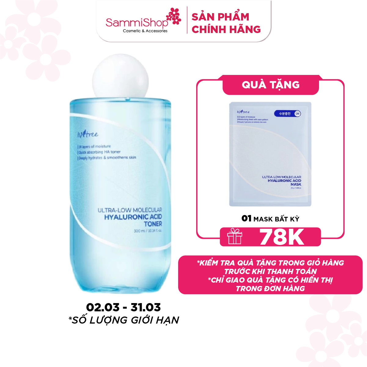 Isntree Nước Hoa Hồng Ultra-Low Molecular Hyaluronic Acid Toner 300ml với 14 loại HA đa phân tử cùng 10,000 ppm nước biển sâu giúp cấp ẩm tức thì chỉ trong 3s và giữ ẩm suốt 24h. Sản phẩm chuyên biệt cho da dầu/da hỗn hợp thiên dầu/da dầu thiếu ẩm cần 1 sản phẩm cấp ẩm chuyên sâu với kết cấu lỏng nhẹ, công thức thẩm thấu nhanh, không gây nhờn dính.