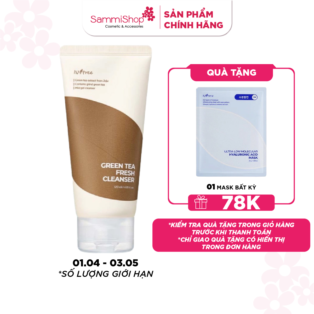 Isntree Sữa Rửa Mặt Green Tea Fresh Cleanser 120ml với 7000 ppm trà xanh cùng phức hợp Anti-sebum P và 4 loại HA giúp làm sạch sâu và kiểm soát bã nhờn. Sản phẩm chuyên biệt cho da dầu/da hỗn hợp thiên dầu cần 1 sản phẩm làm sạch hiệu quả mà không gây khô căng, da vẫn mềm mịn sau khi rửa