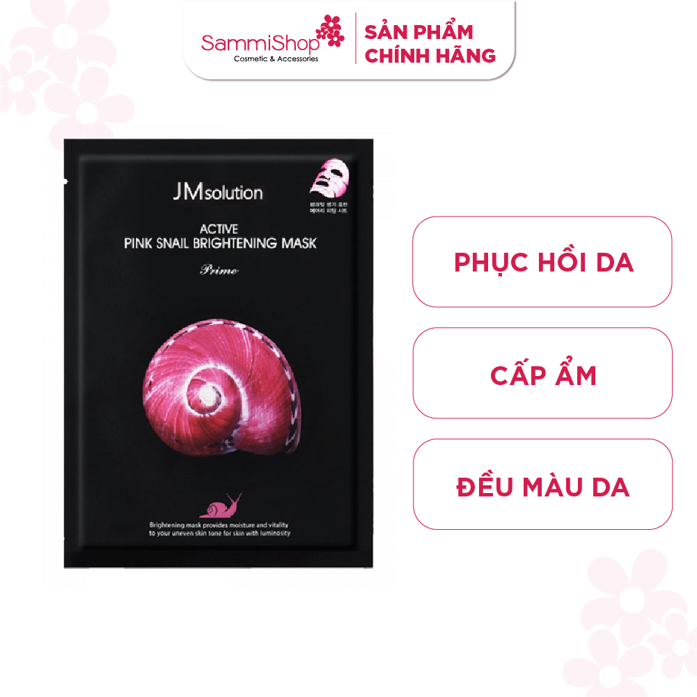 Mặt nạ giấy JMsolution Active Pink Snail Brightening Mask Prime với thành phần chính là dịch nhầy ốc sên có khả năng kích thích sản sinh Collagen, phục hồi, tái tạo các tế bào bị tổn thương, duy trì và ngăn ngừa da bị mất độ ẩm. Chứa thành phần Vitamin B12 giúp cung cấp độ ẩm và truyển tải sức sống cho da thêm sáng hồng tự nhiên.