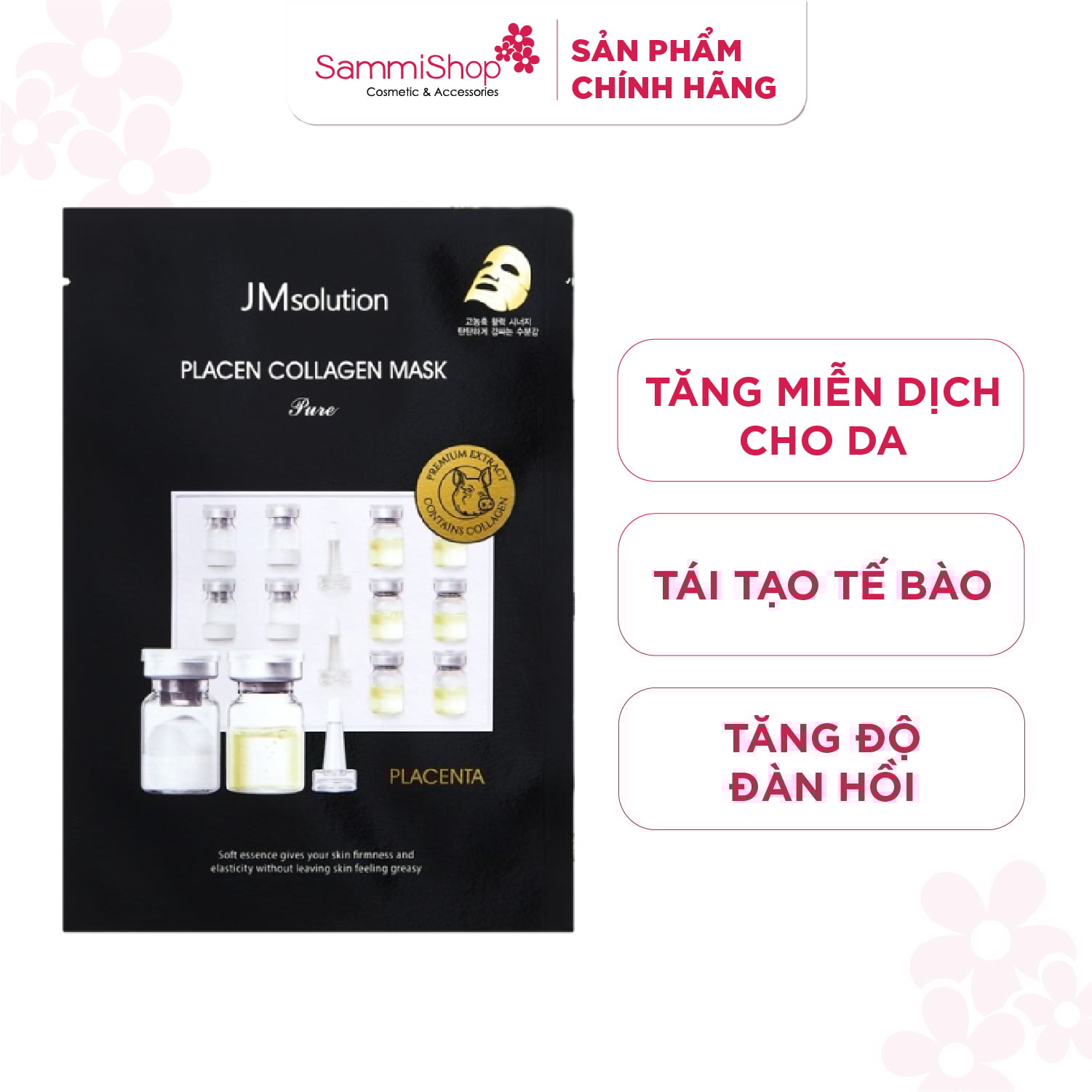 JMSolution Mặt nạ Placen Collagen Mask Pure 30ml chiết xuất từ nhau thai lợn có tác dụng trẻ hóa làn da, làm chậm quá trình lão hóa, giảm nếp nhăn hiệu quả. Ngoài ra, mặt nạ có chứa tinh chất nhau thai lợn giúp tăng độ miễn dịch cho da, kích thích tái tạo tế bào, giúp da săn chắc và đàn hồi hơn.