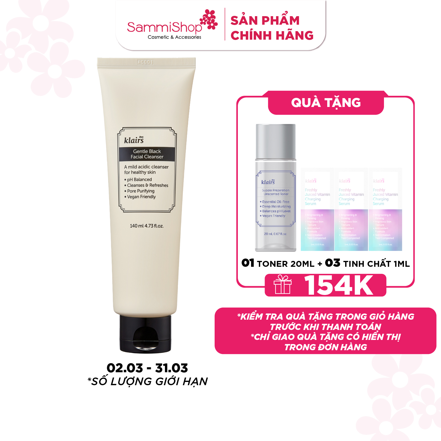 Sữa rửa mặt Klairs Gentle Black Facial Cleanser là sản phẩm sửa rữa mặt dịu nhẹ đến chứa các thành phần thiên nhiên giúp làm sạch sâu đồng thời dưỡng ẩm và nuôi dưỡng làn da khoẻ mạnh. Sản phẩm có độ pH lý tưởng 5.5 - 6.5 giúp duy trì độ ẩm tự nhiên của da, không gây cảm giác khô căng sau khi rửa mặt.