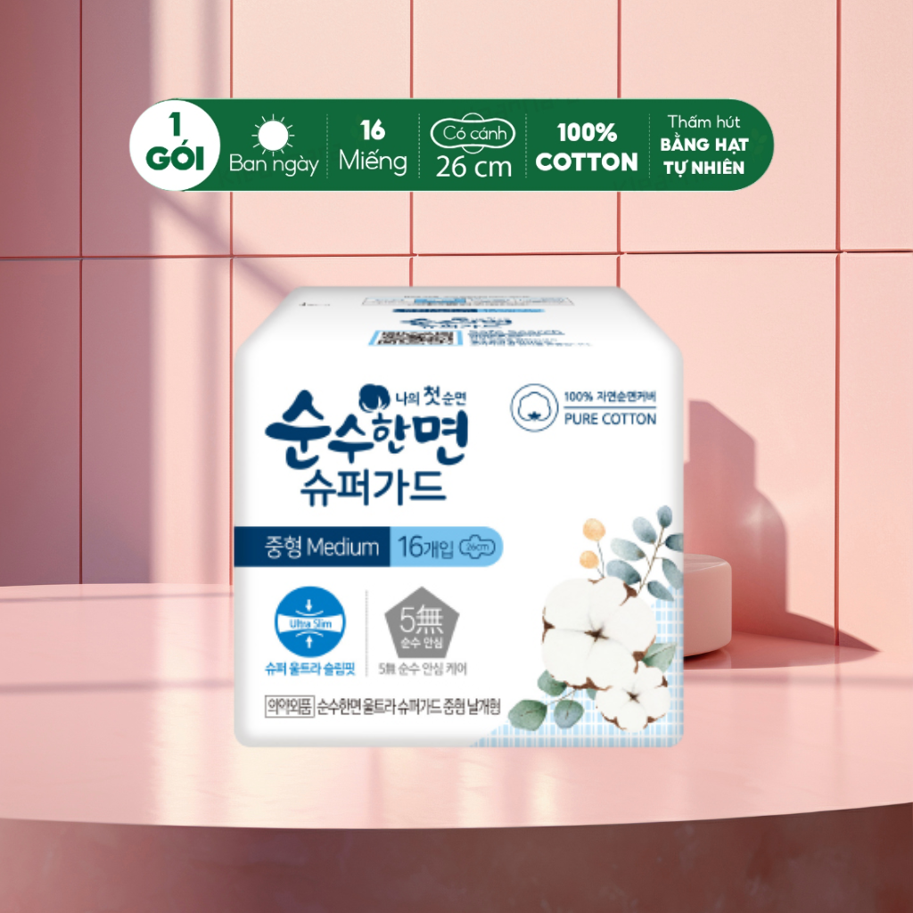 Kleannara BVS siêu mỏng Soonsoohanmyeon Superguard size M (26cm - 16 pcs/ bag) phù hợp sử dụng cho ngày nhiều, với độ thấm hút tối ưu từ các hạt tự nhiên, giúp bạn thoải mái sử dụng cả ngày dài.