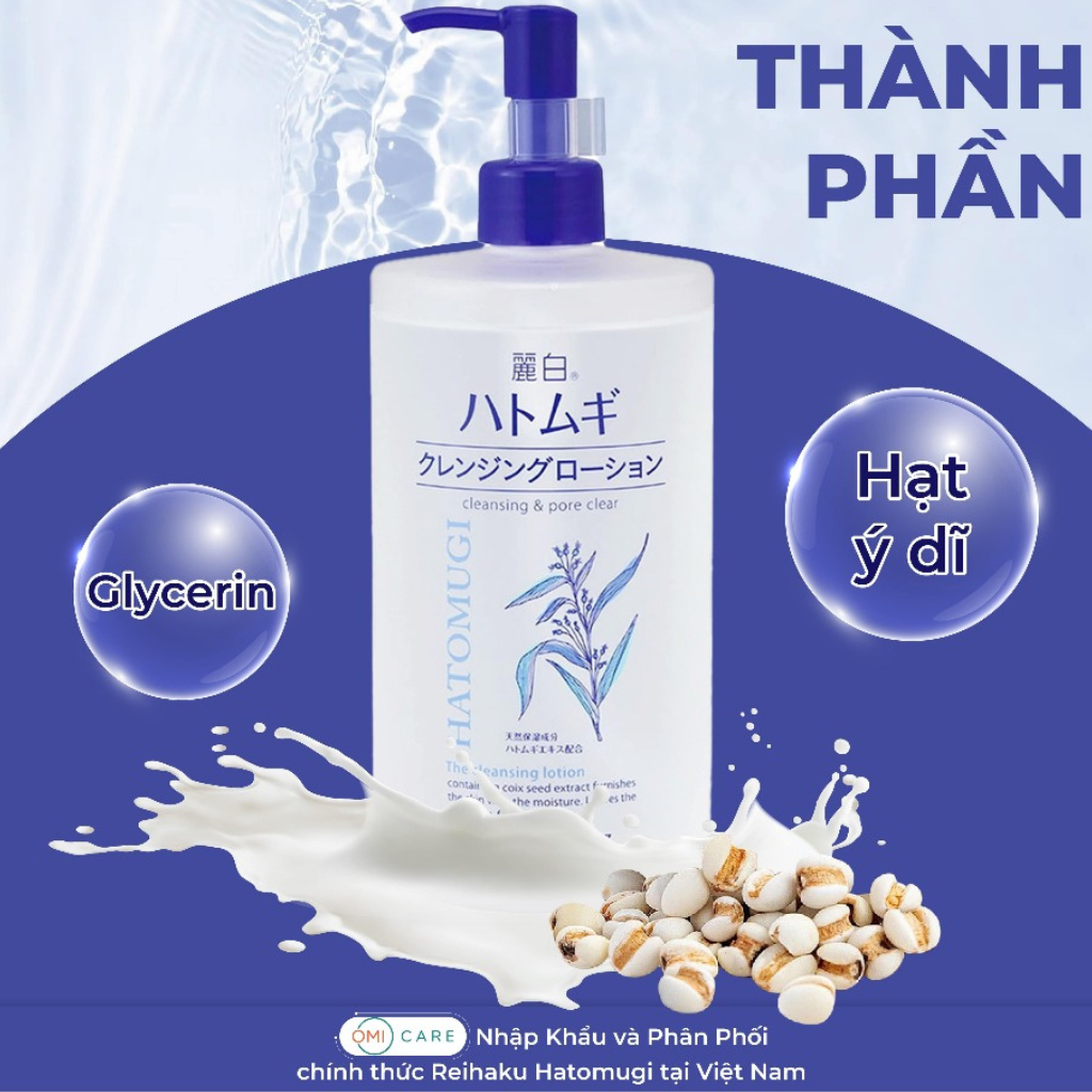 Kumano Dầu tẩy trang Hatomugi Cleansing oil 500ml xếp hạng số 1 Rakuten, dễ dàng loại bỏ lớp trang điểm lâu trôi, chống thấm nước, cấp ẩm sâu, làm mềm mịn và dưỡng sáng da nhờ chiết xuất Ý dĩ giàu vitamin, acid béo