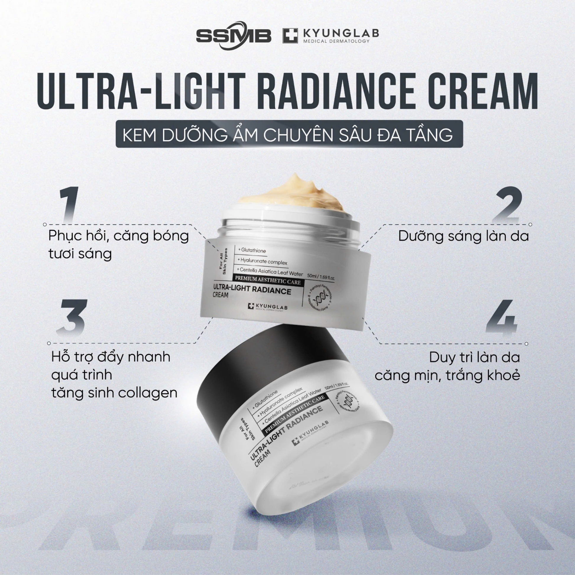 Kyung Lab Kem dưỡng da Ultra Light Radiance Cream 50ml với khả năng dưỡng sáng làn da, đồng thời cấp ẩm giúp da khỏe từ bên trong, hạn chế tình trạng da yếu.