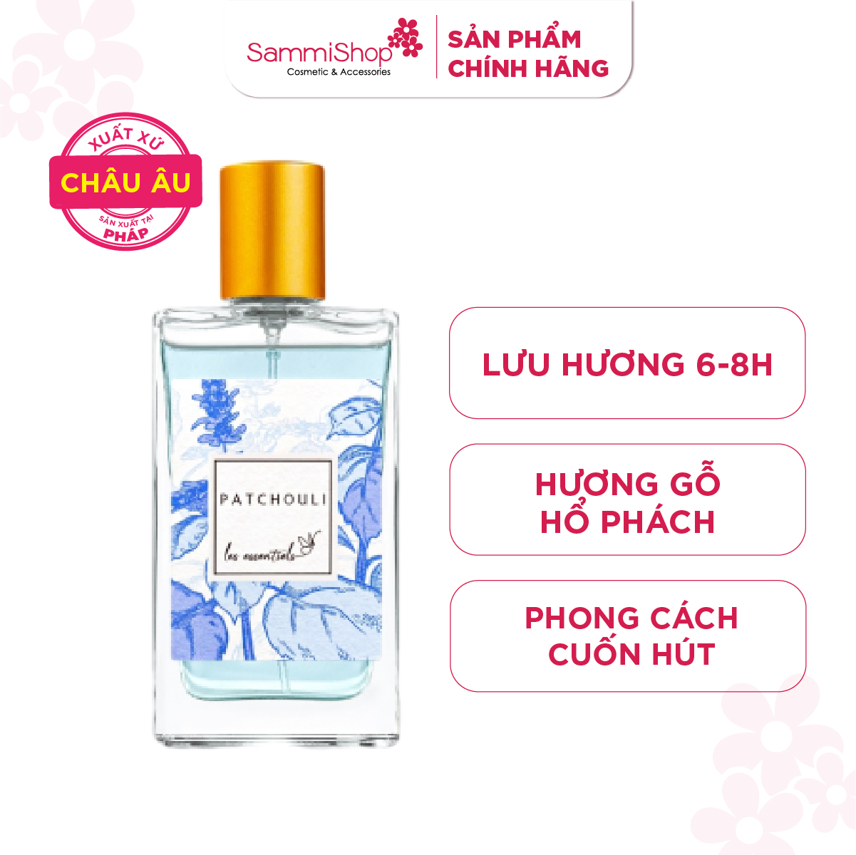 Les Essentiels Nước hoa Patchouli Eau De Parfum 80ml mở ra thế giới hương thơm đầy mê hoặc nhờ gỗ tuyết tùng ấm áp kết hợp với hoắc hương ngọt ngào, bí ẩn. Dải hương dẫn dắt cảm xúc nhờ xạ hương và hổ phách nồng nàn, tạo nên vẻ đẹp cuốn hút và nồng nhiệt.