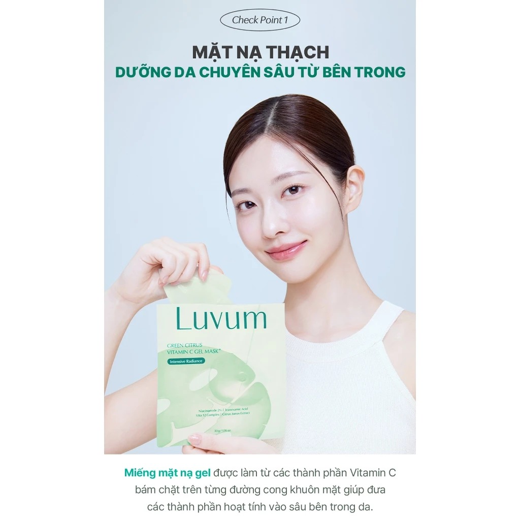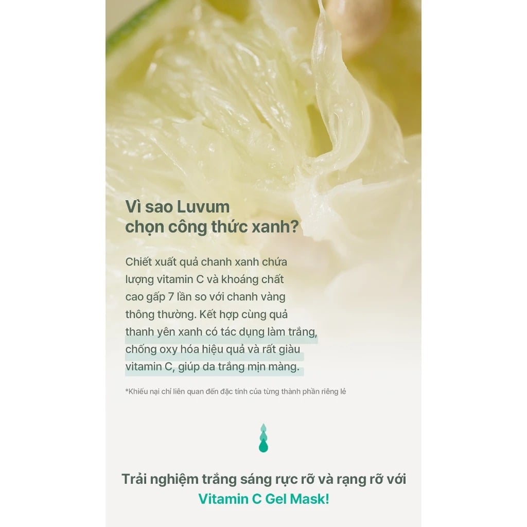 Luvum Mặt nạ thạch Green Citrus vitamin C gel mask plus với 12 loại Vitamin Complex và các thành phần hoạt tính sau khi hấp thụ sẽ trở nên trong suốt