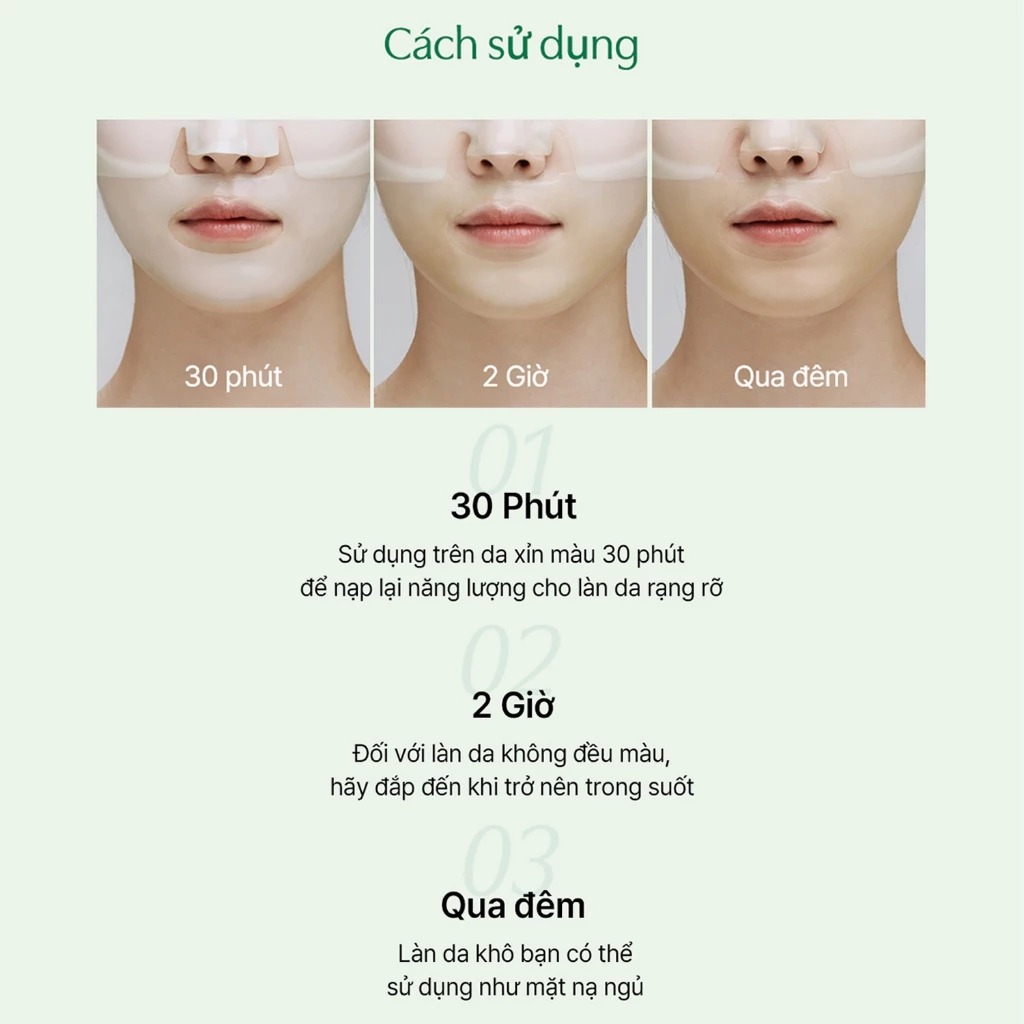 - 2 giờ: Đối với làn da không đều màu, đắp đến lúc mặt nạ trong suốt
