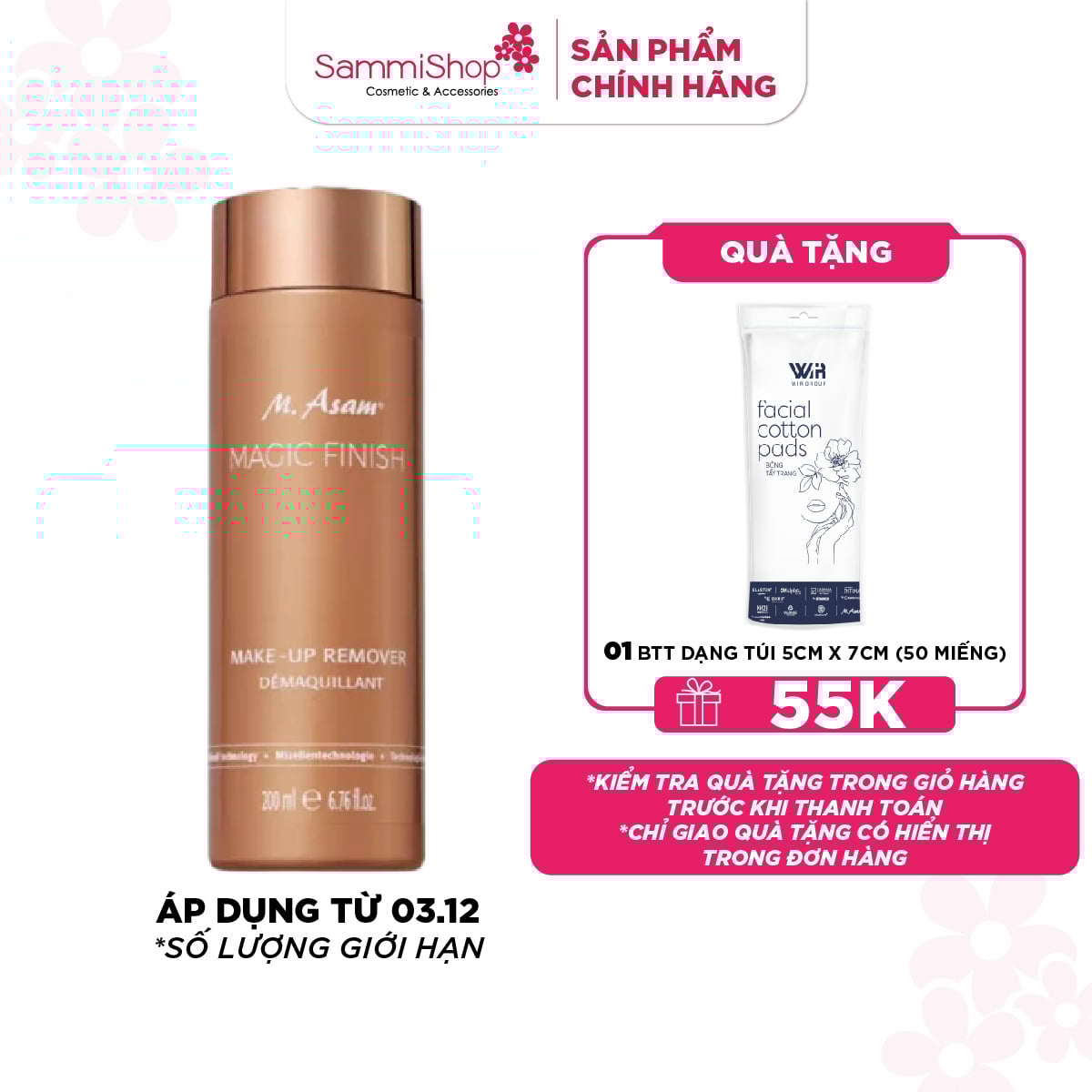 M.Asam Nước Tẩy Trang Make Up Remover 200ml công nghệ Micellar giúp làm sạch hiệu quả lớp trang điểm mà không gây khô da. Hiệu quả 3 trong 1: tẩy trang, làm sạch sâu, cung cấp độ ẩm cho làn da.