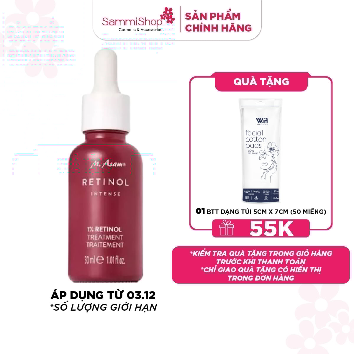 - Nồng độ cao 1% Retinol kích thích tăng sinh collagen giúp làm mờ nếp nhăn hiệu quả