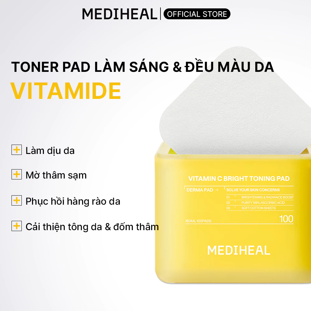 Mediheal Mặt nạ dưỡng da Vitamin C Bright Toning Pad 180ml với phức hợp multi vitamin giúp dưỡng sáng và cải thiện độ đều màu của làn da. Đồng thời, sản phẩm bổ sung và duy trì độ ẩm cần thiết, mang lại làn da sáng mịn, mềm mại và tươi tắn hơn.