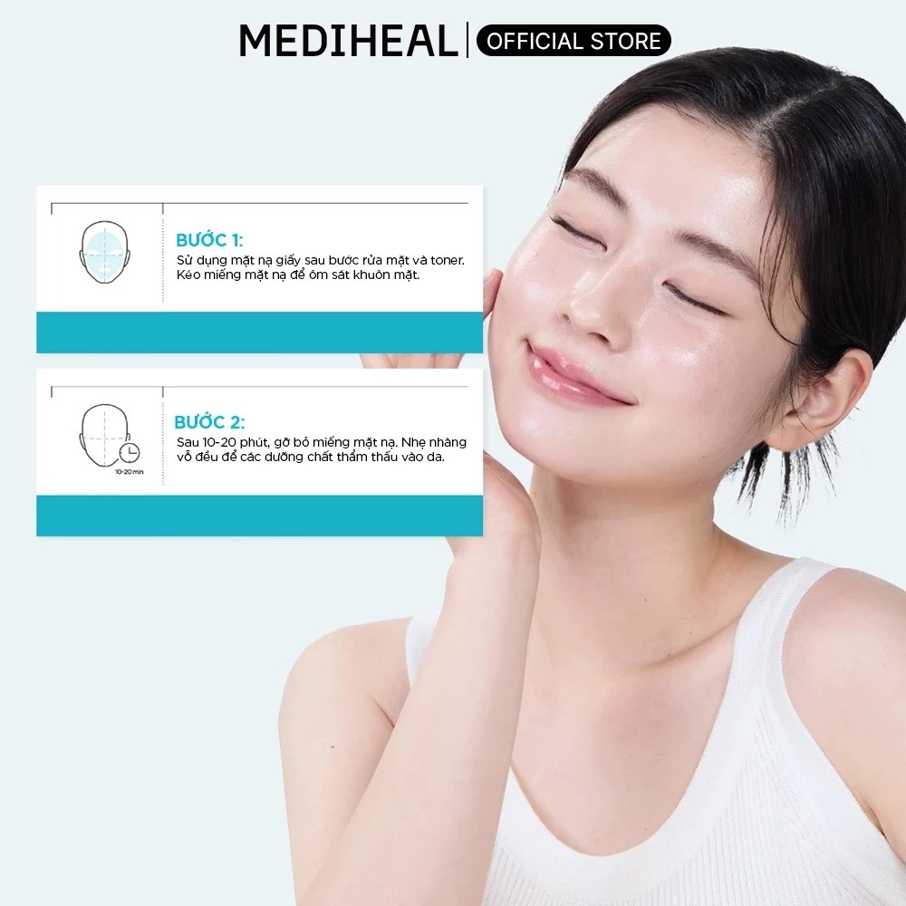 - Bước 1: Đắp mặt nạ lên mặt, dùng ngón tay vuốt nhẹ các mép để mặt nạ ôm khít toàn bộ khuôn mặt.
