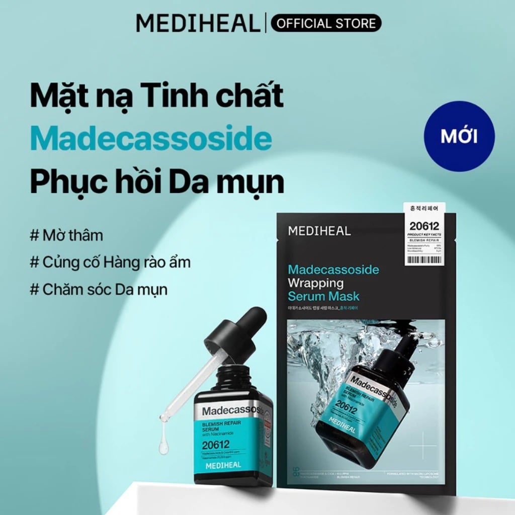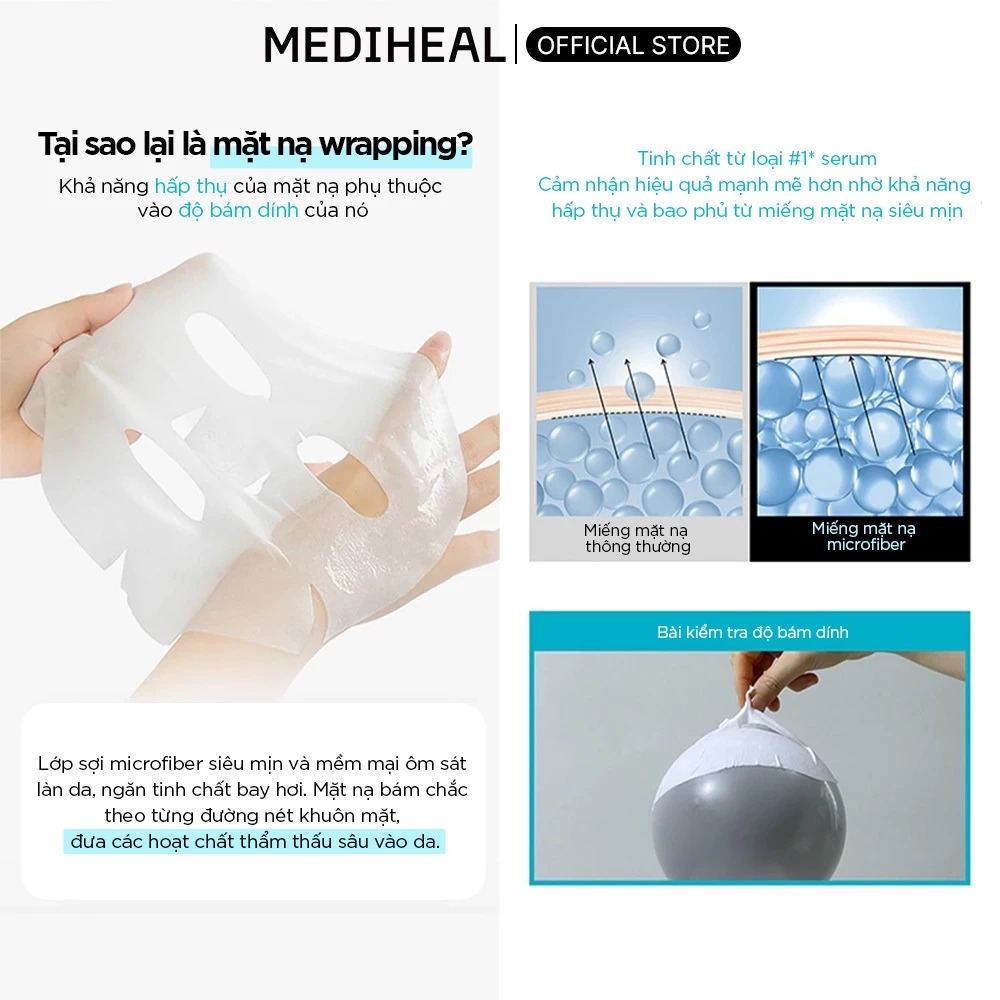 Mediheal Mặt nạ Wrapping Serum Mask_Blemish Repair 25ml mặt nạ “bọc serum” cao cấp của Mediheal. Dòng sản phẩm này chứa lượng serum cô đặc nhiều hơn mặt nạ giấy thông thường, giúp da hấp thụ dưỡng chất sâu và hiệu quả hơn.