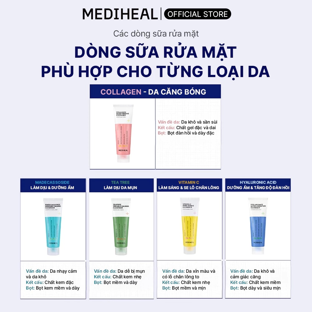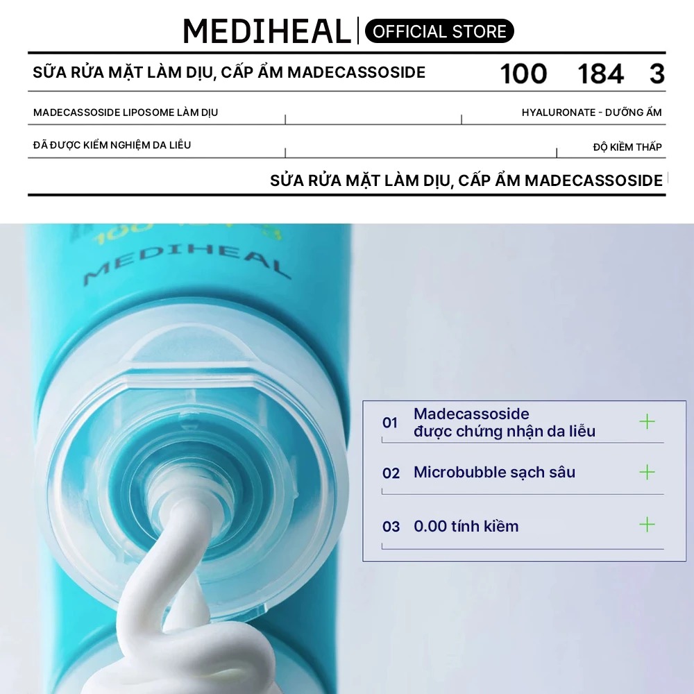 Mediheal Sữa rửa mặt Madecassoside Cleanser Moisture Calming 120ml với khả năng dưỡng ẩm và làm dịu làn da nhạy cảm, giúp da vẫn mềm mịn ngay cả sau bước làm sạch.