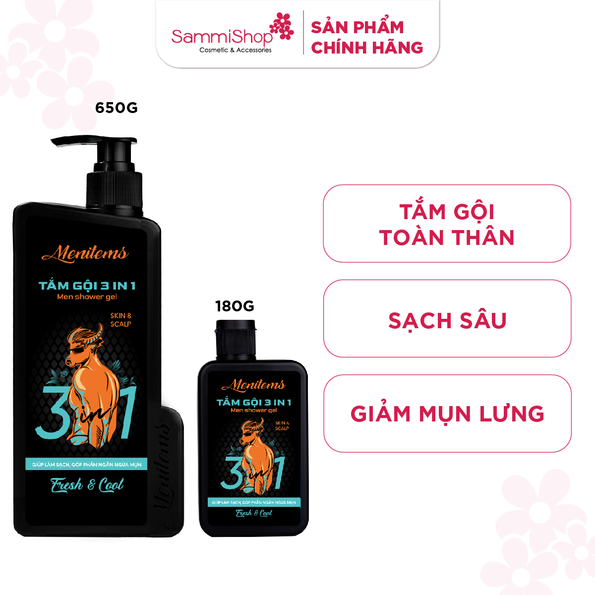Menitems Tắm gội Nam 3in1 Nam Men Shower Gel Fresh & Cool tiện lợi 3 trong 1 khi có thể tắm, gội, rửa mặt phù hợp cho người bận rộn