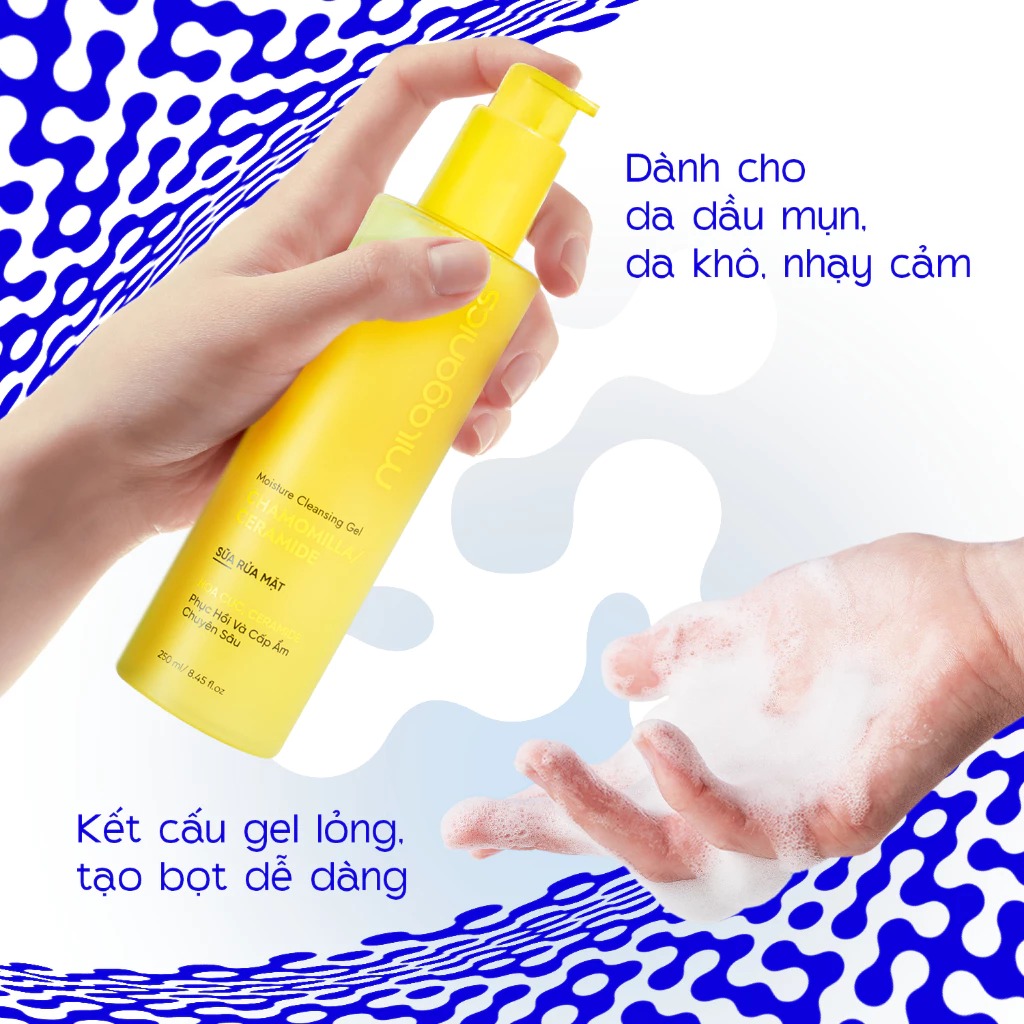 Milaganics Sữa rửa mặt hoa cúc Moisture Cleansing Gel Chamomilla Ceramide 250ml vừa giúp sạch sâu vừa phục hồi làn da, giúp hàng rào bảo vệ da thêm khỏe mạnh.