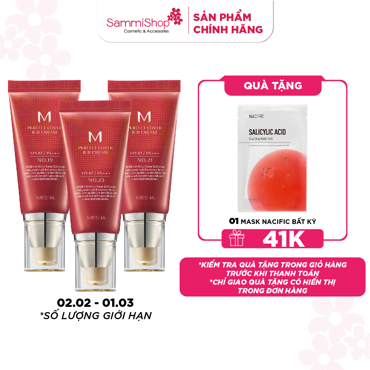 Missha Kem nền M Perfect Cover BB Cream EX SPF42 PA+++ 50ml là dòng kem nền đa năng dành cho những ai muốn có lớp nền mịn đẹp nhanh chóng mà không cần nhiều bước trang điểm. Sản phẩm kết hợp che phủ hoàn hảo, giữ nền lên tới 30H, kết hợp khả năng dưỡng ẩm và chống nắng SPF42 PA+++, giúp bảo vệ làn da trước tác hại từ môi trường trong khi vẫn giữ vẻ tự nhiên, căng bóng.