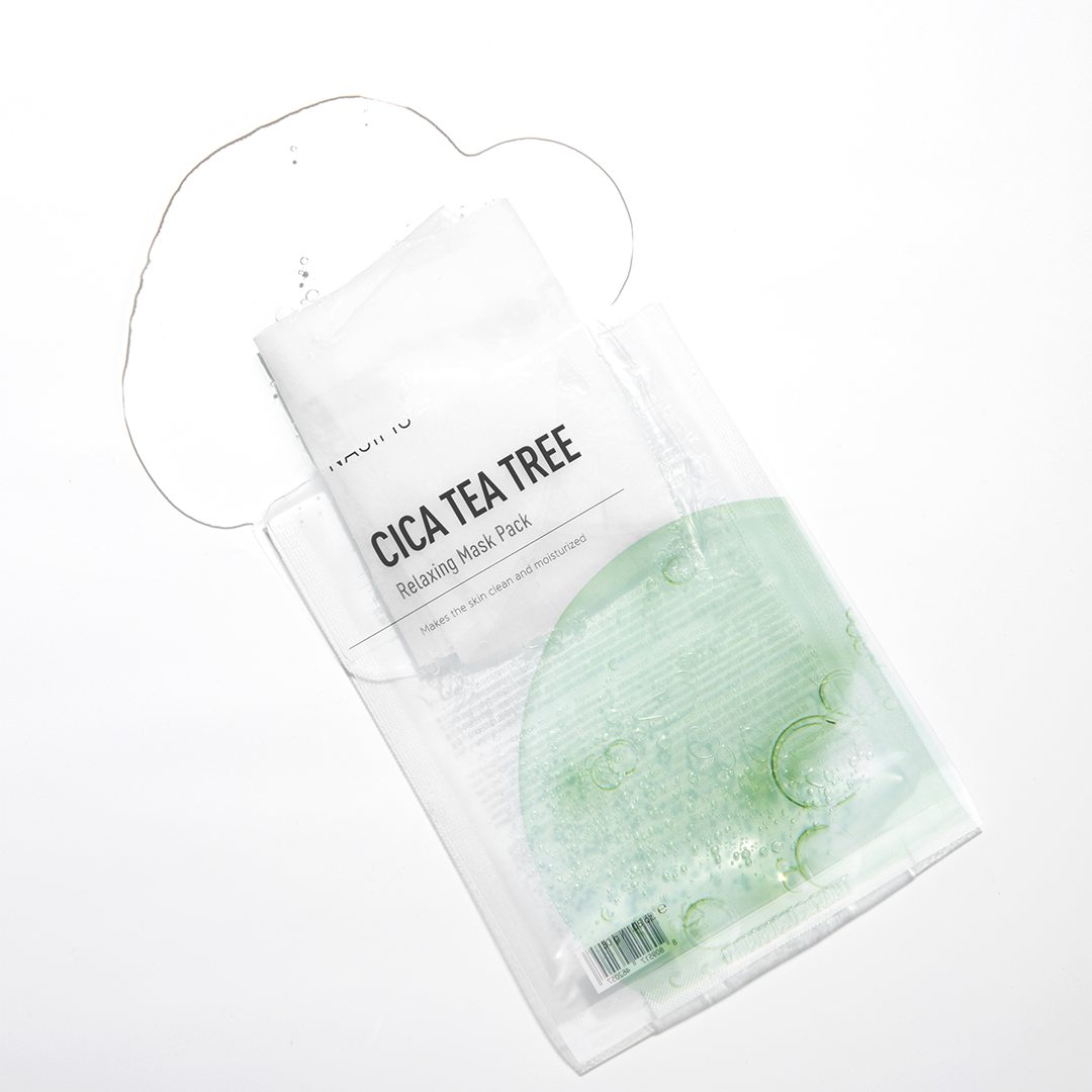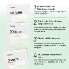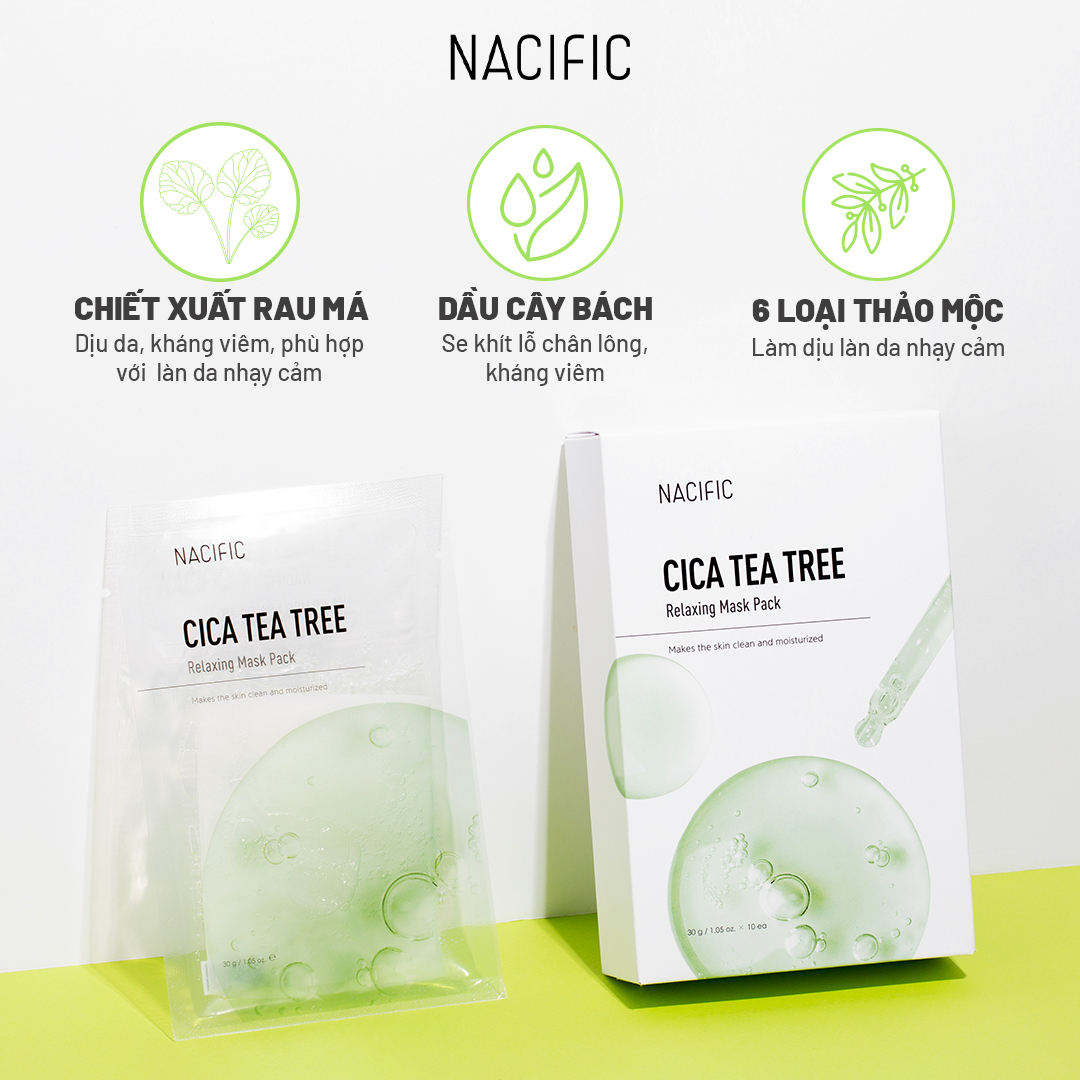 Mặt nạ Nacific Cica Tea Tree Relaxing Mask Pack với độ bám dính tuyệt vời có chứa chiết xuất Centella Asiatica và cây trà để làm dịu làn da bị kích ứng, chữa lành làn da có vấn đề và điều tiết lượng bã nhờn.