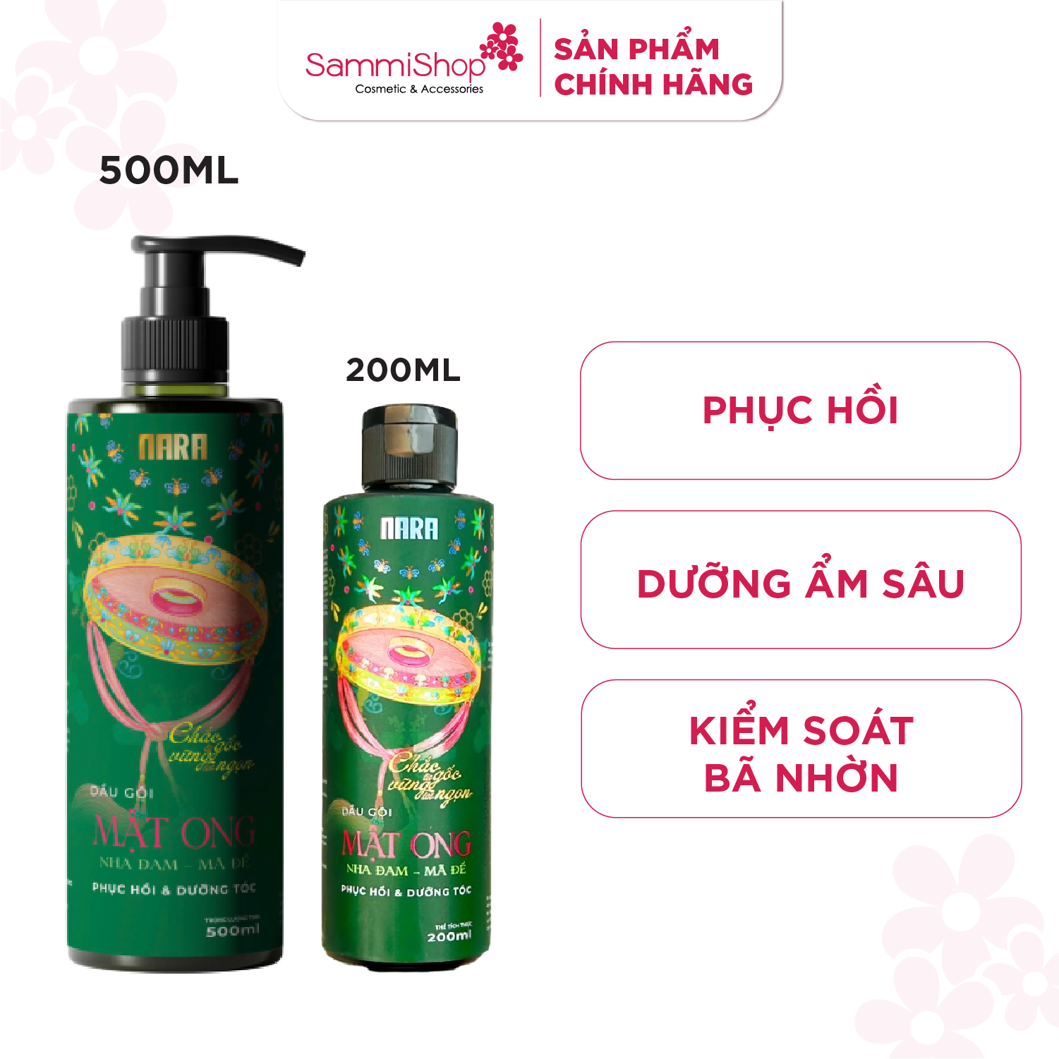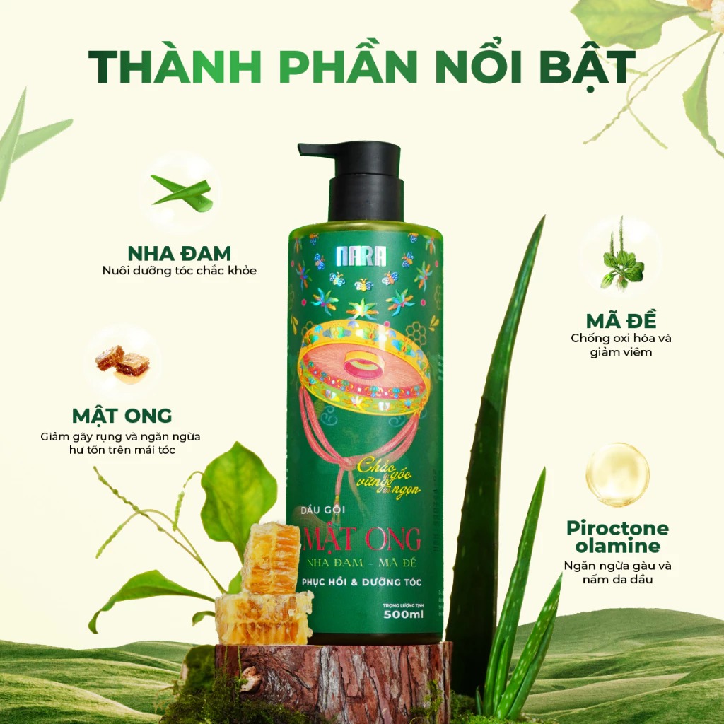 Nara Dầu gội Mật ong Nha đam mã đề giúp giảm rụng tóc và kích thích nang tóc phát triển, tăng cường mọc nhanh hơn