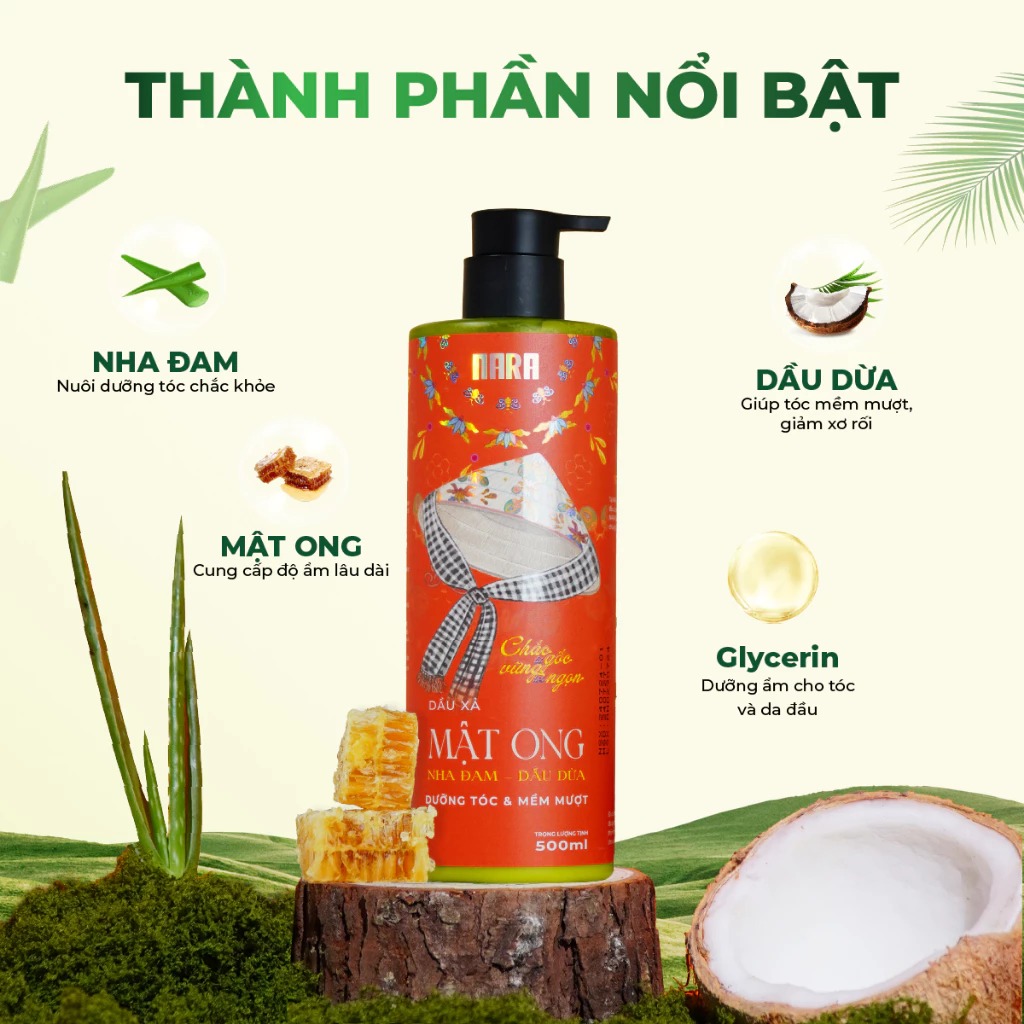 Nara Dầu xả Mật Ong Nha đam dầu dừa giúp tóc luôn bóng mượt, ngoài ra bảo vệ nang tóc giúp tóc mọc nhanh hơn