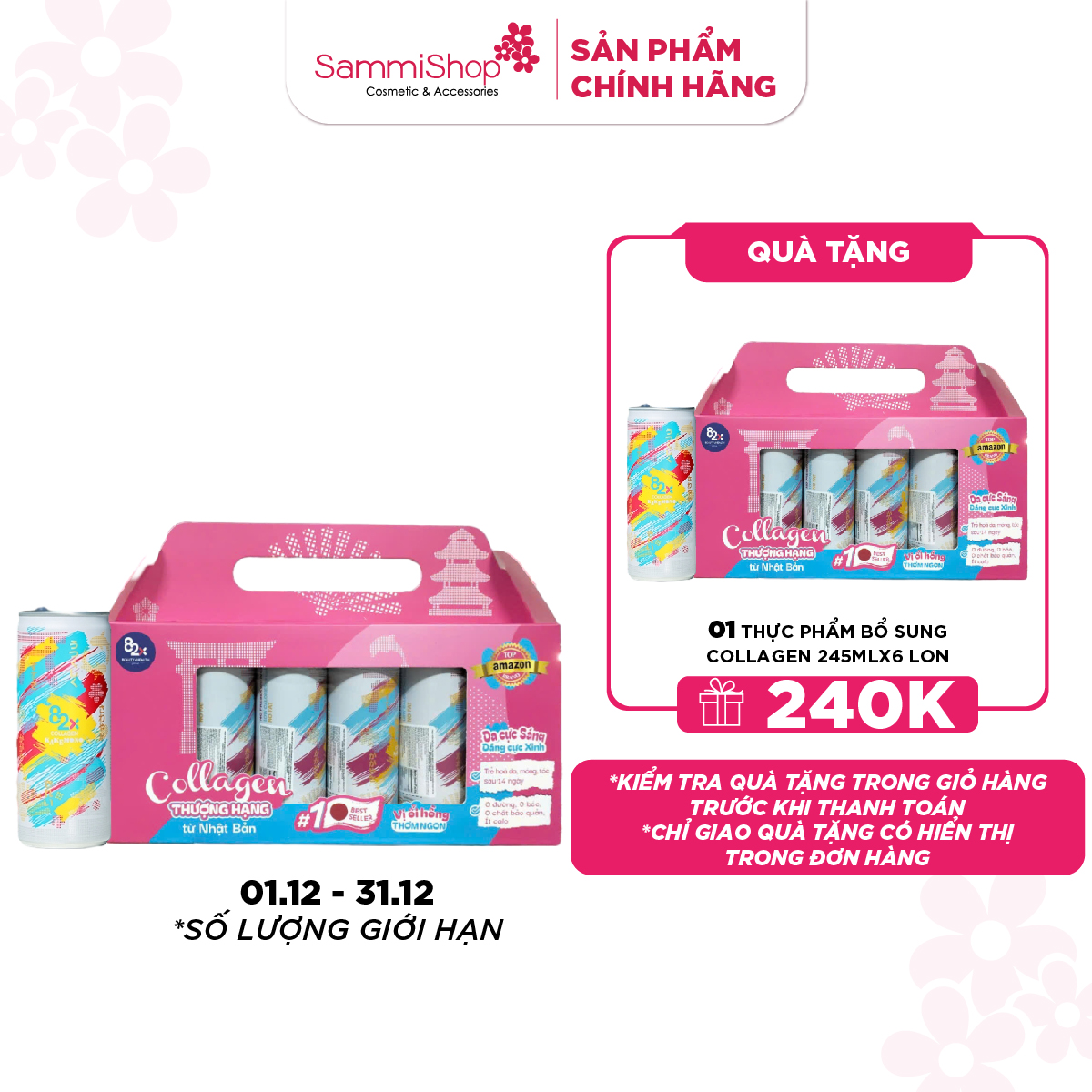 01.12 - 31.12 82x Thực phẩm bổ sung Collagen Beauty Drink 500 Milligram Mixed With Vitamin C 70 Milligram, Pink Guava Flavor (82x Beaut Brand) 245ml * 6 lon
