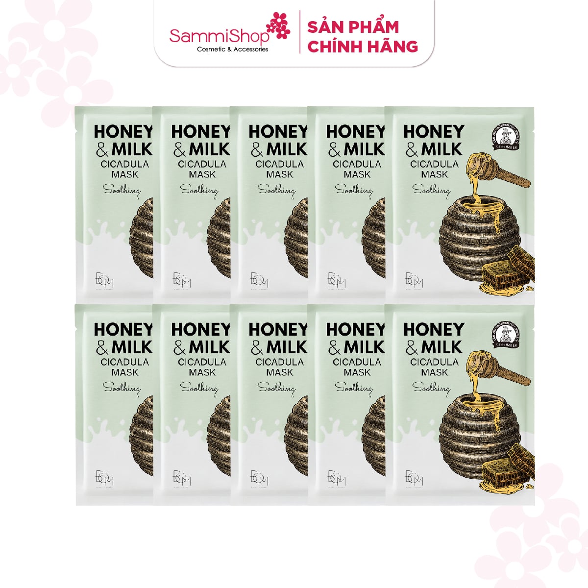 Mặt nạ B.O.M Honey & Milk Soothing Cicadula Mask với chiết xuất chính từ mật ong, protein sữa kết hợp cùng các thành phần như rau má, hoa cúc và Aquaxyl có khả năng làm dịu nhanh chóng làn da đang kích ứng, thư giãn da, cung cấp nước, giữ ẩm và nuôi dưỡng làn da khoẻ mạnh.