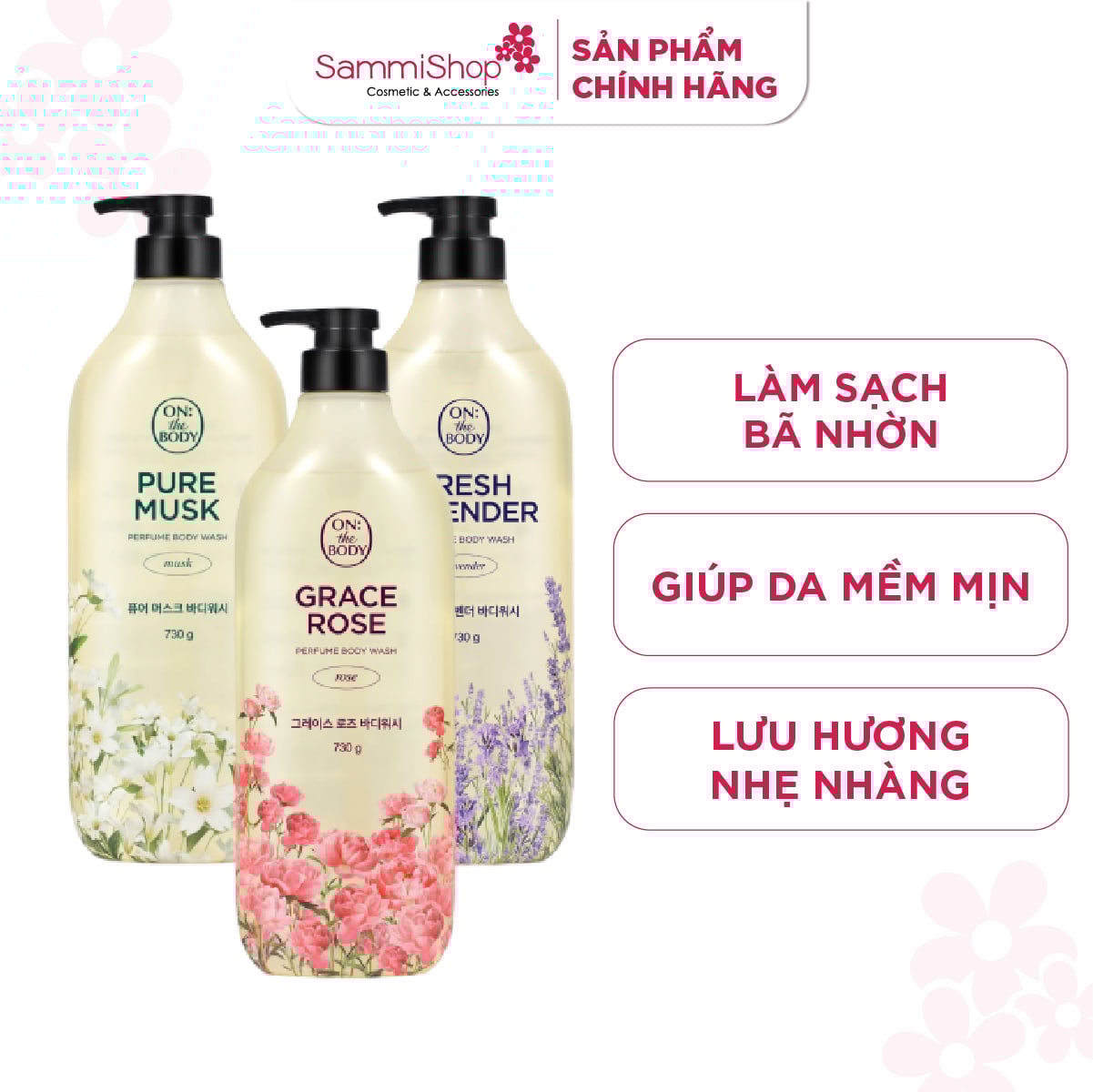 ON:) THE BODY Perfume Body Wash 730g có kết cấu dạng kem đặc, nhẹ nhàng làm sạch cơ thể, lấy đi bụi bẩn, bã nhờn trên da, mang lại độ dưỡng ẩm mịn màng tránh để làn da khô ráp, nứt nẻ và hương thơm nước hoa từ thiên nhiên nhẹ nhàng, quyến rũ, lưu hương suốt cả ngày.