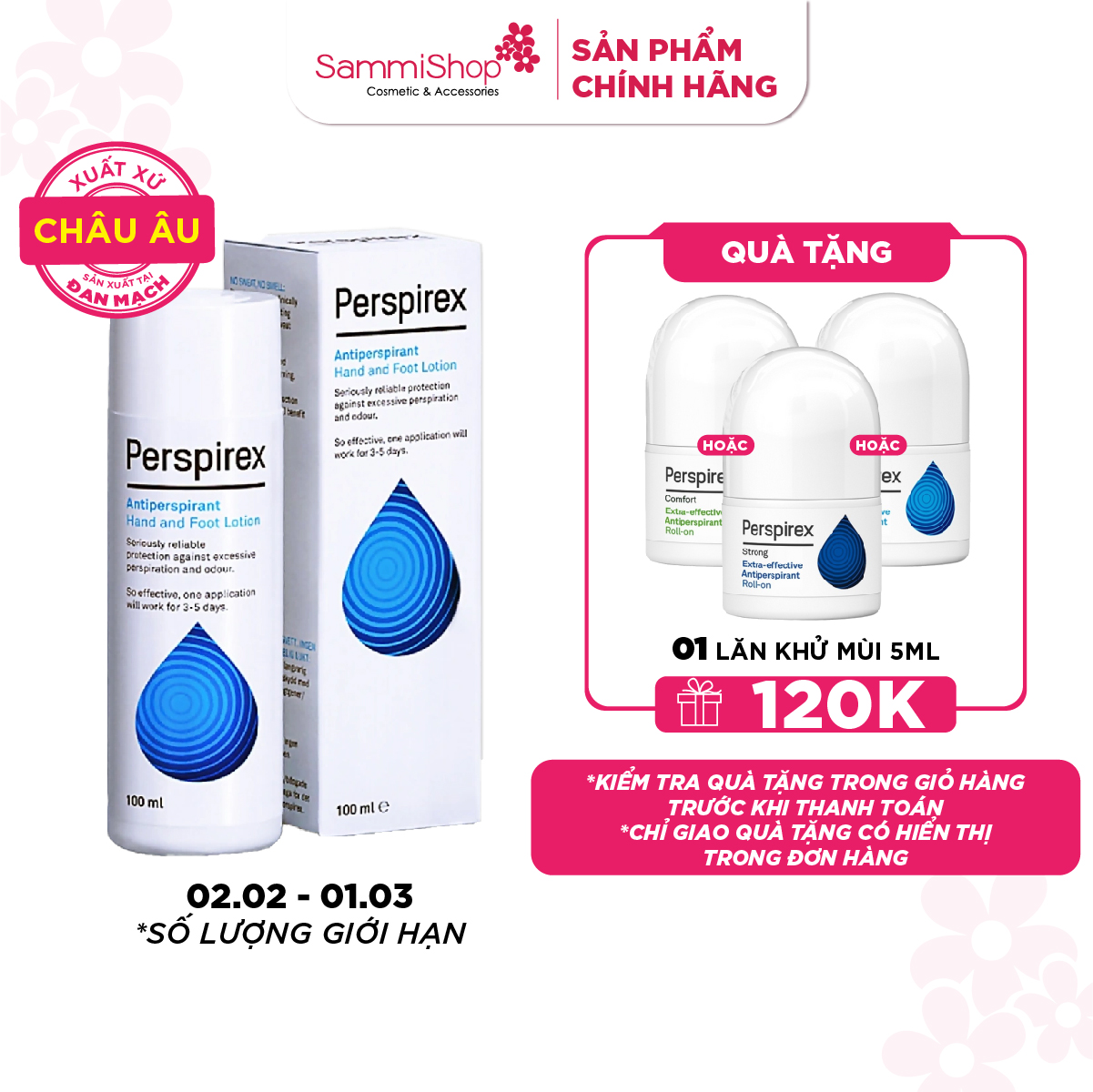 - Đối với chân: Thoa đều một lớp mỏng Perspirex vào lòng bàn chân, có thể sử dụng bông để hỗ trợ nếu cần.