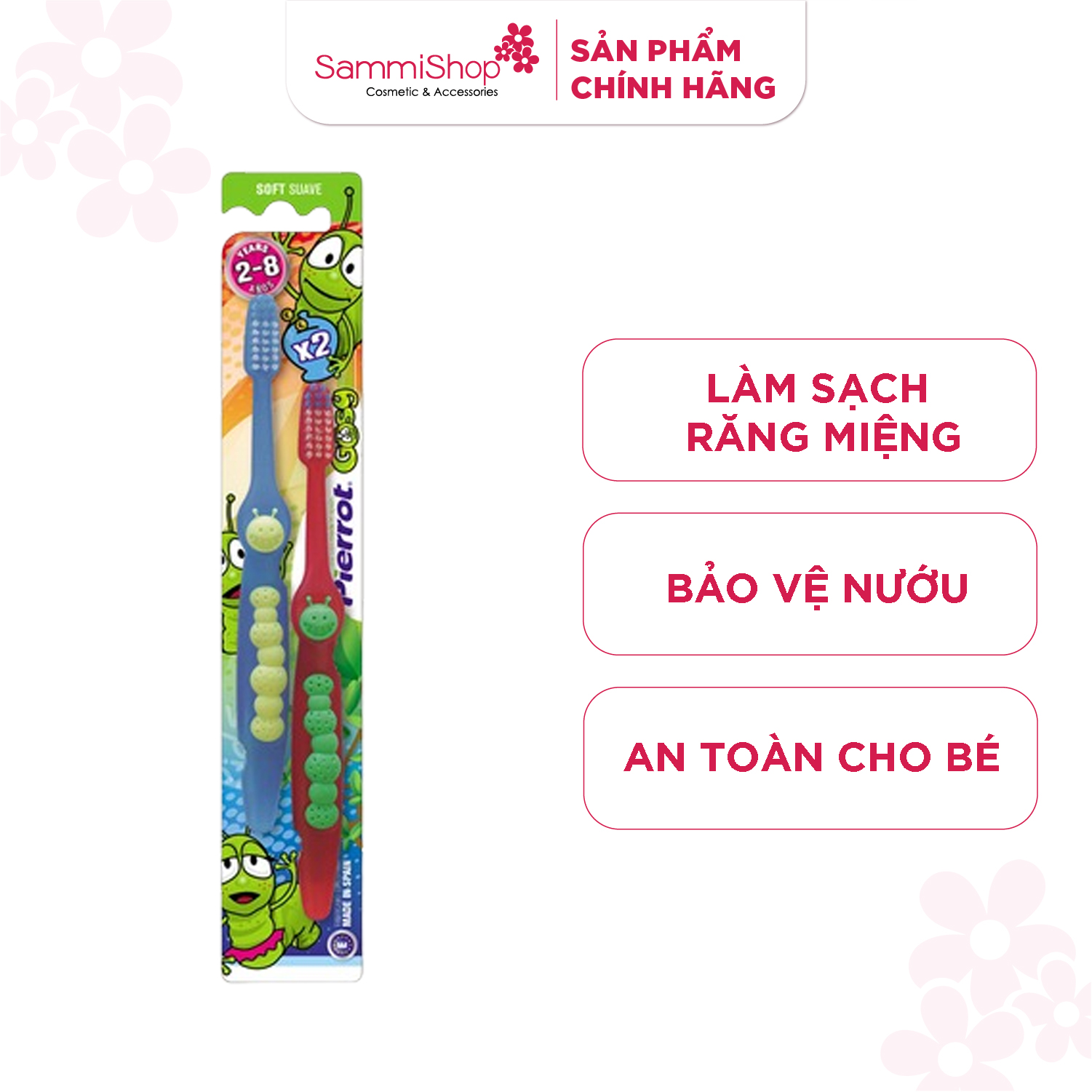 - Bộ đôi bàn chải đánh răng trẻ em Pierrot GusyX2 siêu mềm giúp chải sạch răng và nướu một cách nhẹ nhàng nhờ cấu tạo lông bàn chải mềm mảnh, ngoài ra còn làm sạch mảng bám, thức ăn và có tác dụng mát xa nướu.