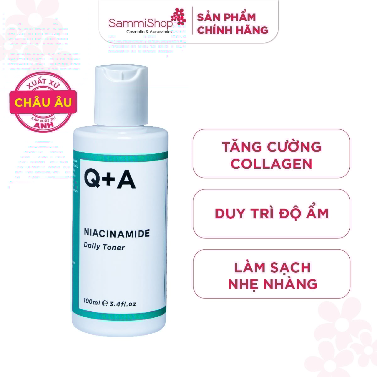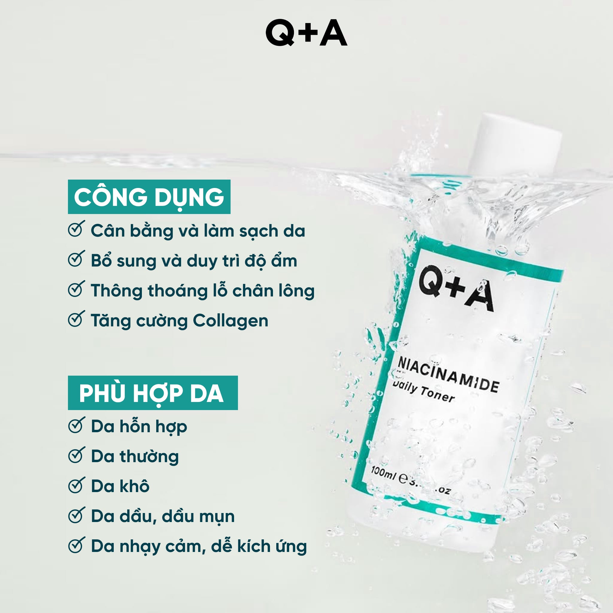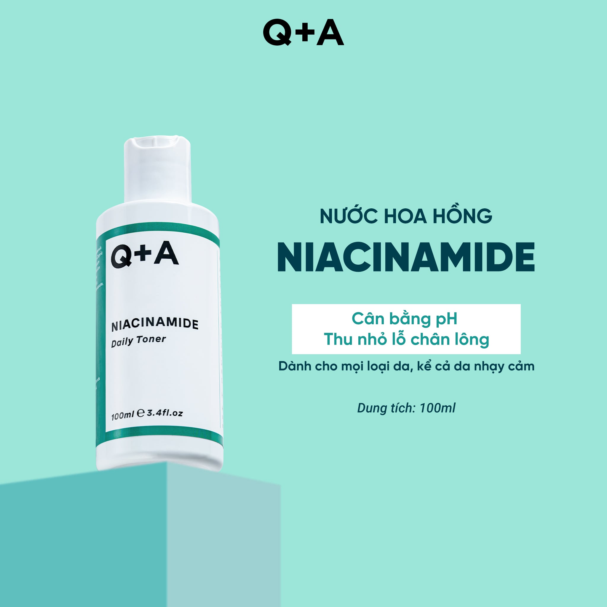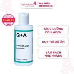 Q+A Nước hoa hồng Niacinamide Daily Toner 100ml giúp hỗ trợ thông thoáng lỗ chân lông và làm dịu tình trạng mụn, mang lại làn da sáng khoẻ và đều màu hơn.